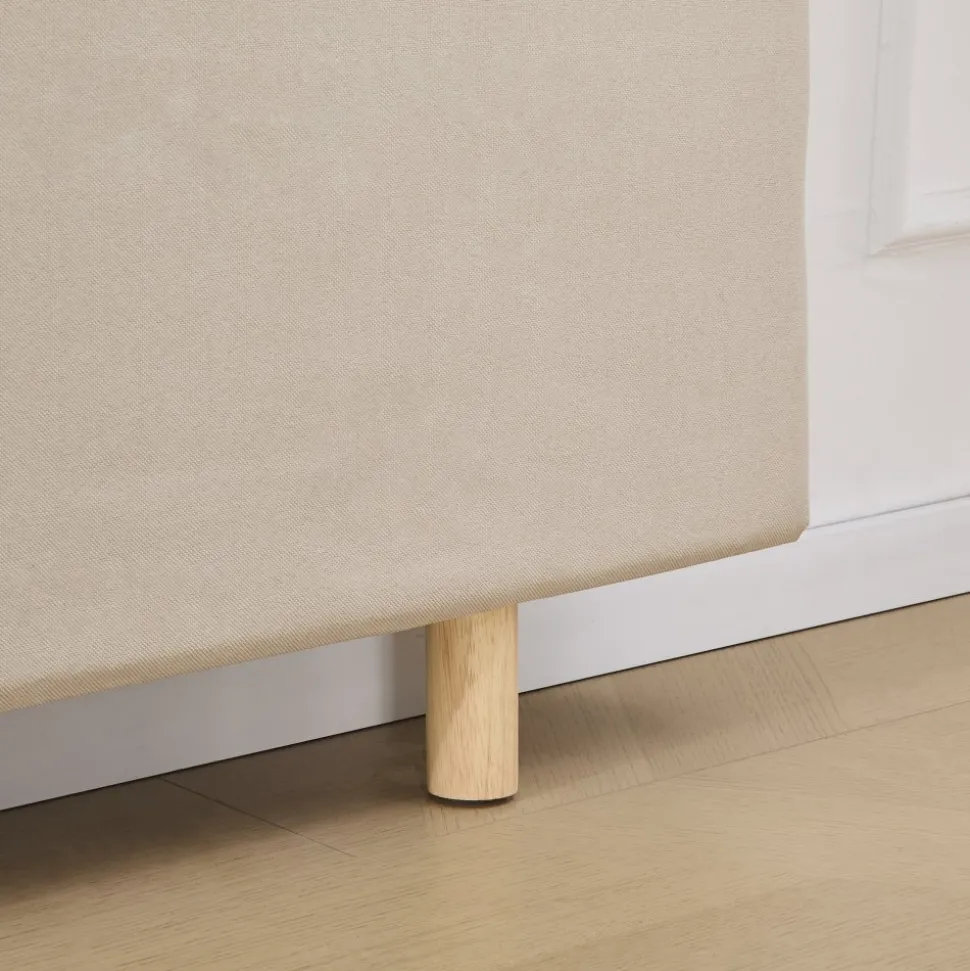 Alnö slät med nackkuddar 180 cm bred. Totalhöjd: 125 cm inklusive ben. Beige tyg.