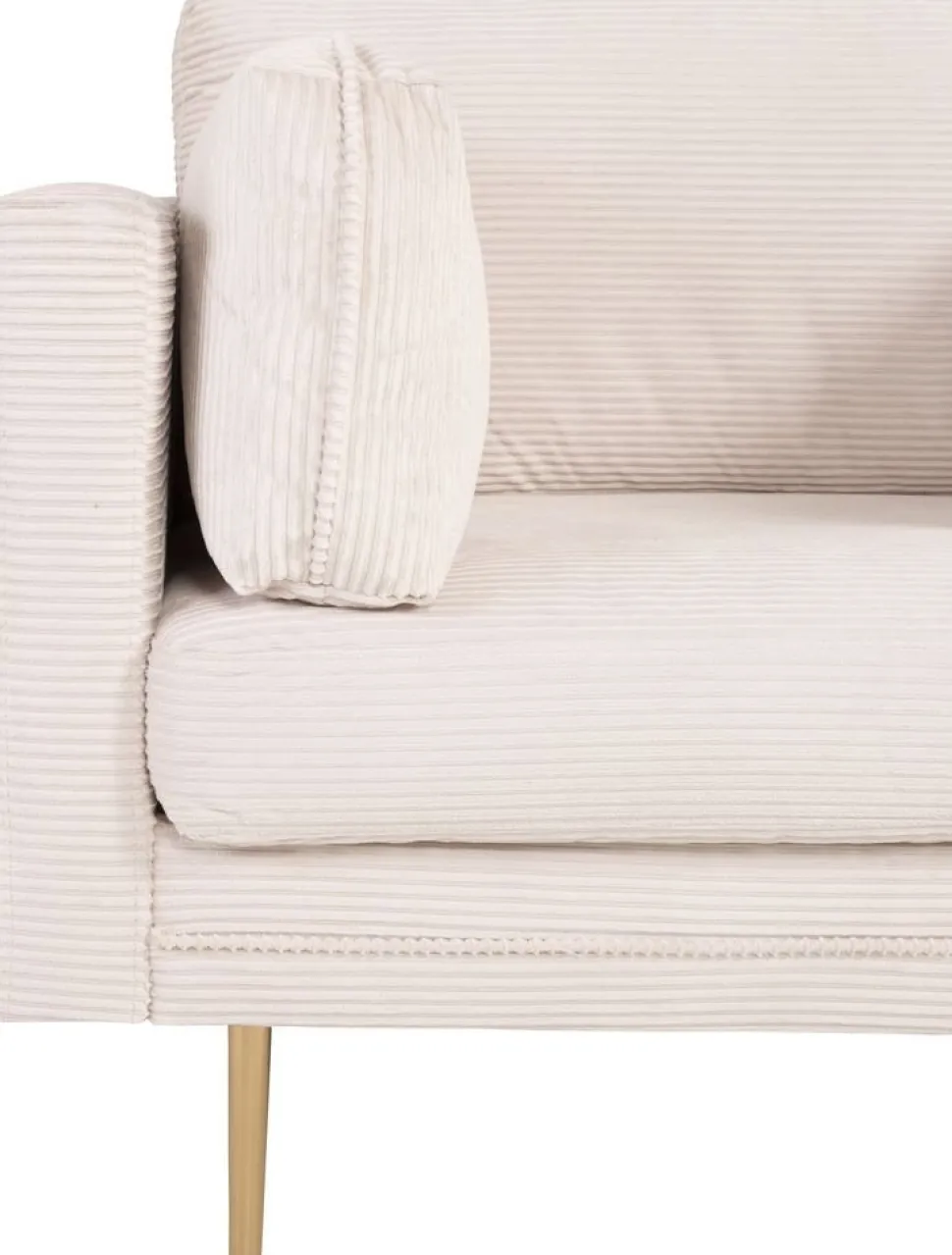 Fåtölj klädd med ett ljusgrått manchestertygg i 100% polyester, stomme i massivt trä.