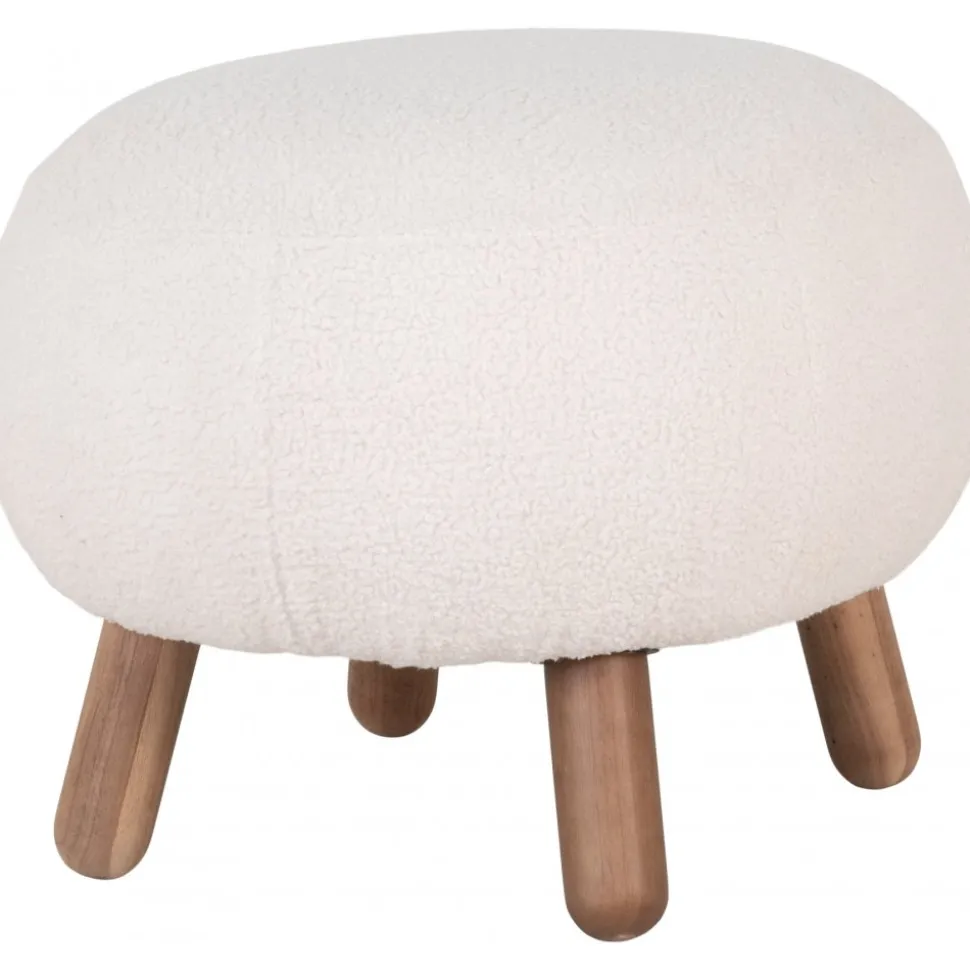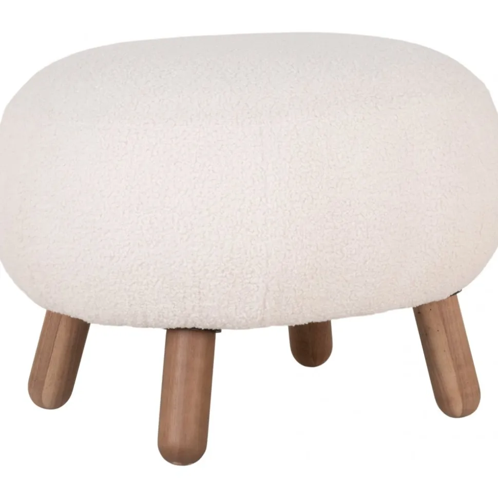 Fotpall i fårskinnsimitation. Gjord av furu och gummiträ med klädsel av polyester. Viss montering krävs.
