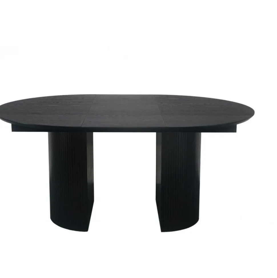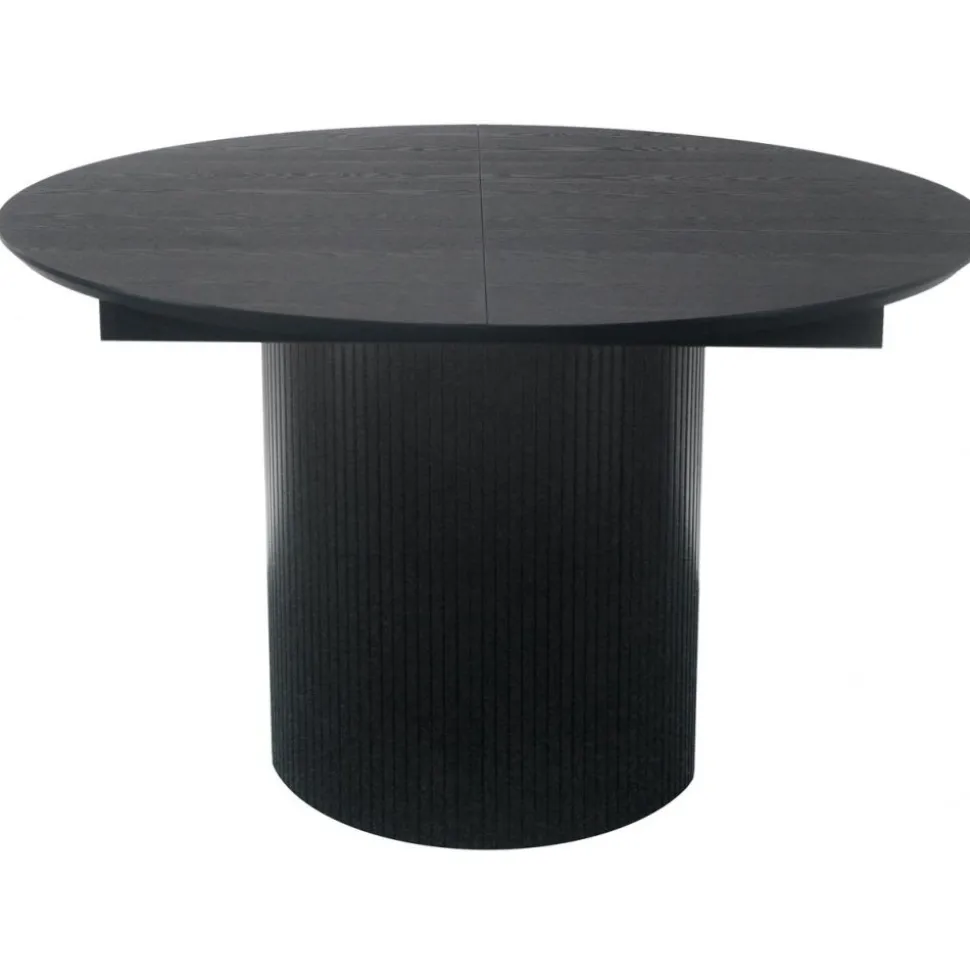 Scarlett i runt utförande av svartlackad askfaner. Det ingår 1 st iläggsskiva så bordet kan förlängas till ett ovalt på 165 cm, plus att det går att köpa till ytterliggare en iläggsskiva. Bordsskivan är 25 mm tjock. Bordet finns även i vitpigmenterad ekfaner.