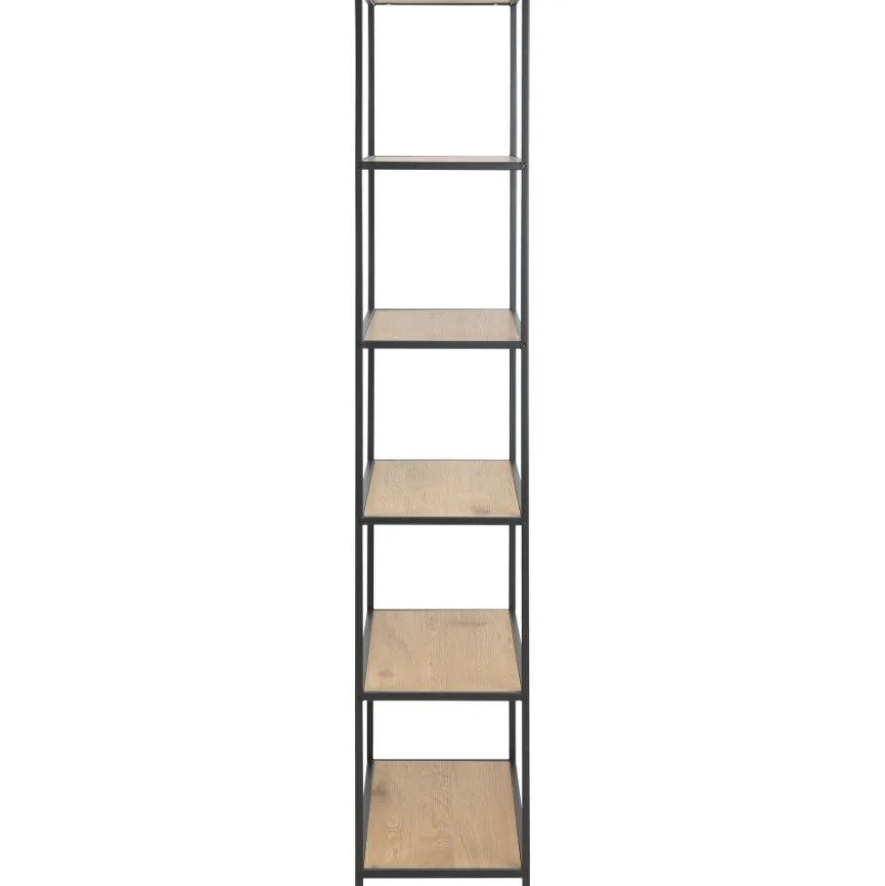Bokhylla. Ram av pulverlackerad metall. Hyllplan av MDF och melamin.