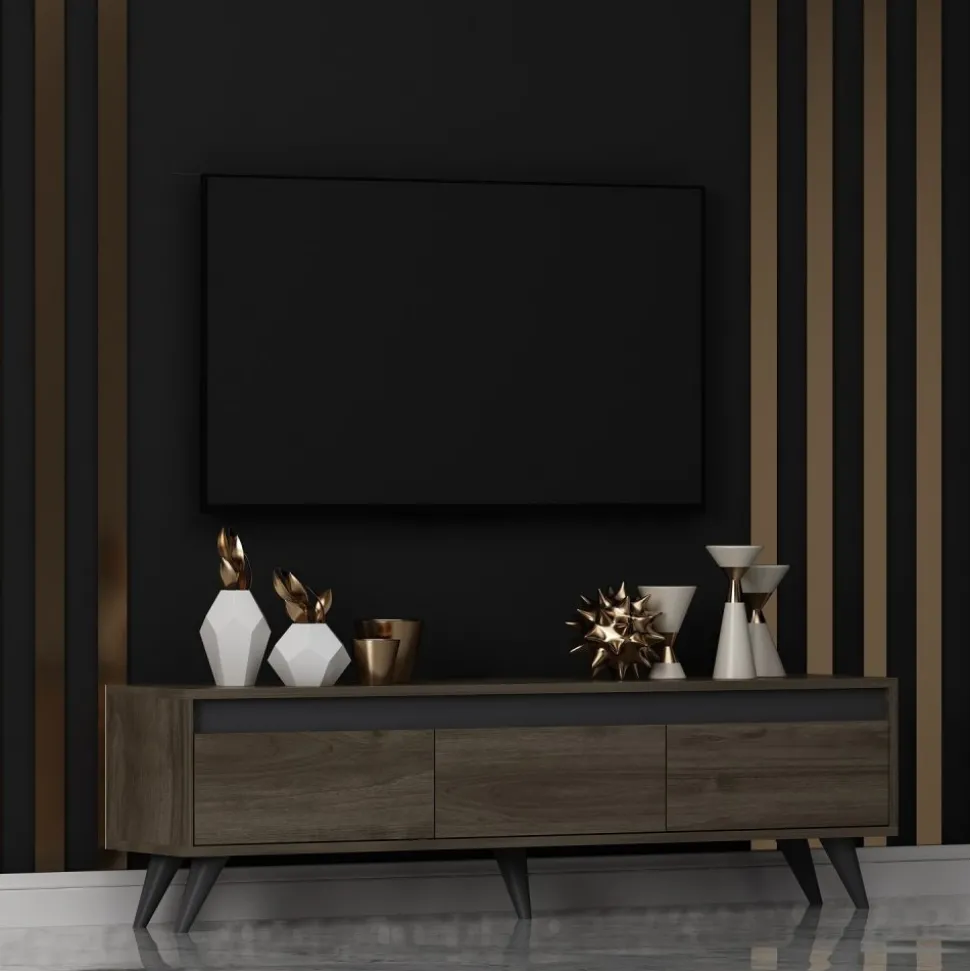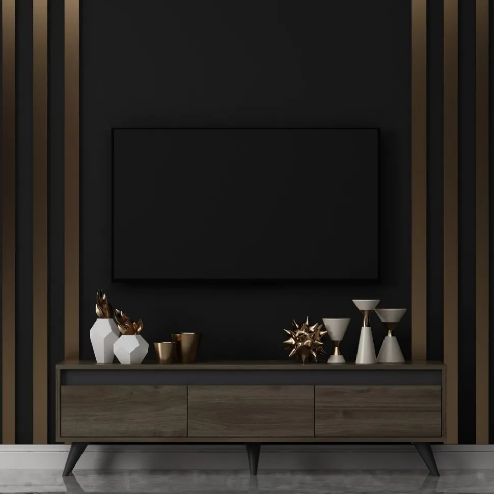 Mediabänk av spånskiva.