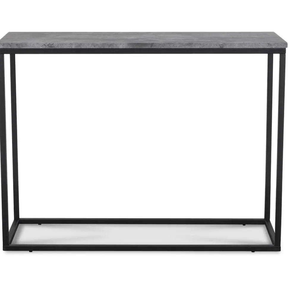 Bordets toppskiva är tillverkad i MDF med cementimitation. Den slitstarka ytan är både tålig och lätt att underhålla. Det svartlackade metallunderredet erbjuder stabilitet och en modern, minimalistisk look som kompletterar bordets överdel.