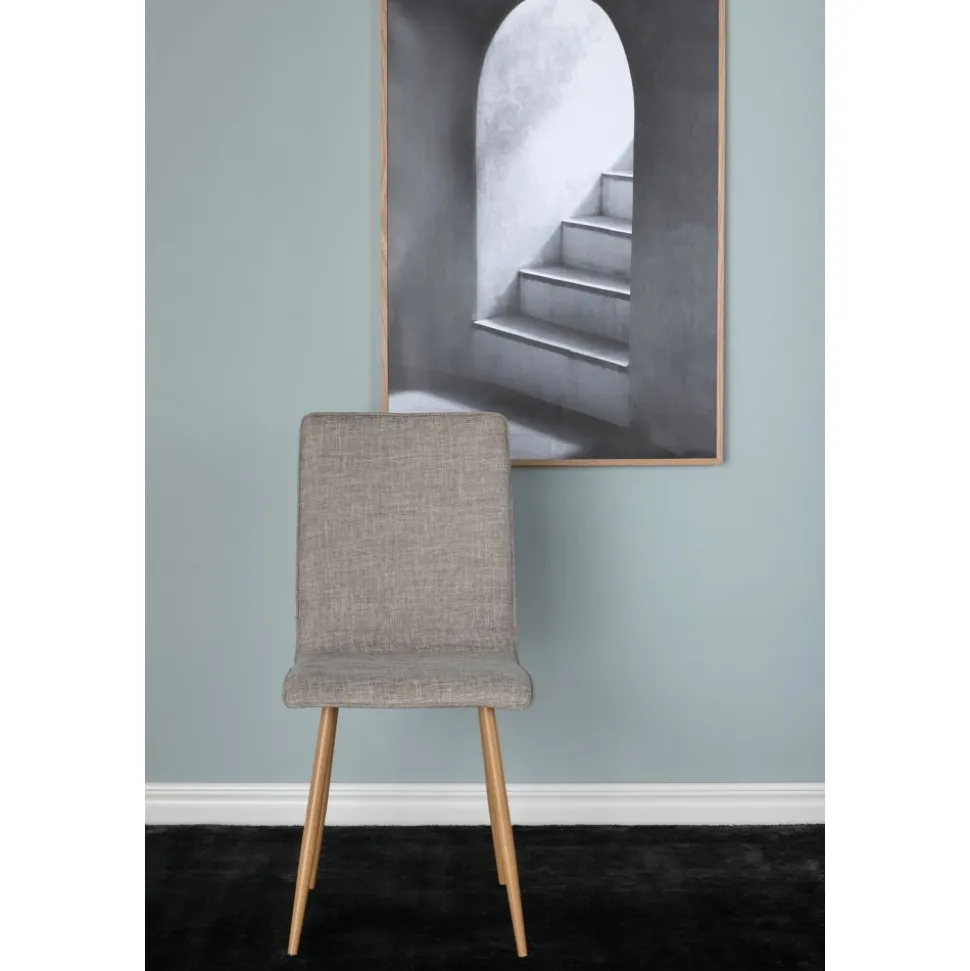 Matstol av metall, klädd med polyestertyg.