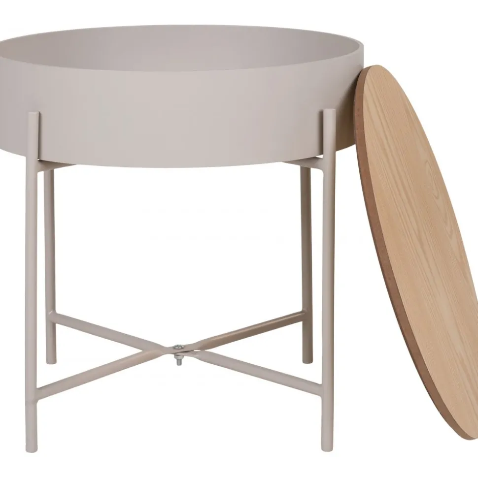 Sidobord av MDF och melamin med ben av stål. Levereras omonterad.
