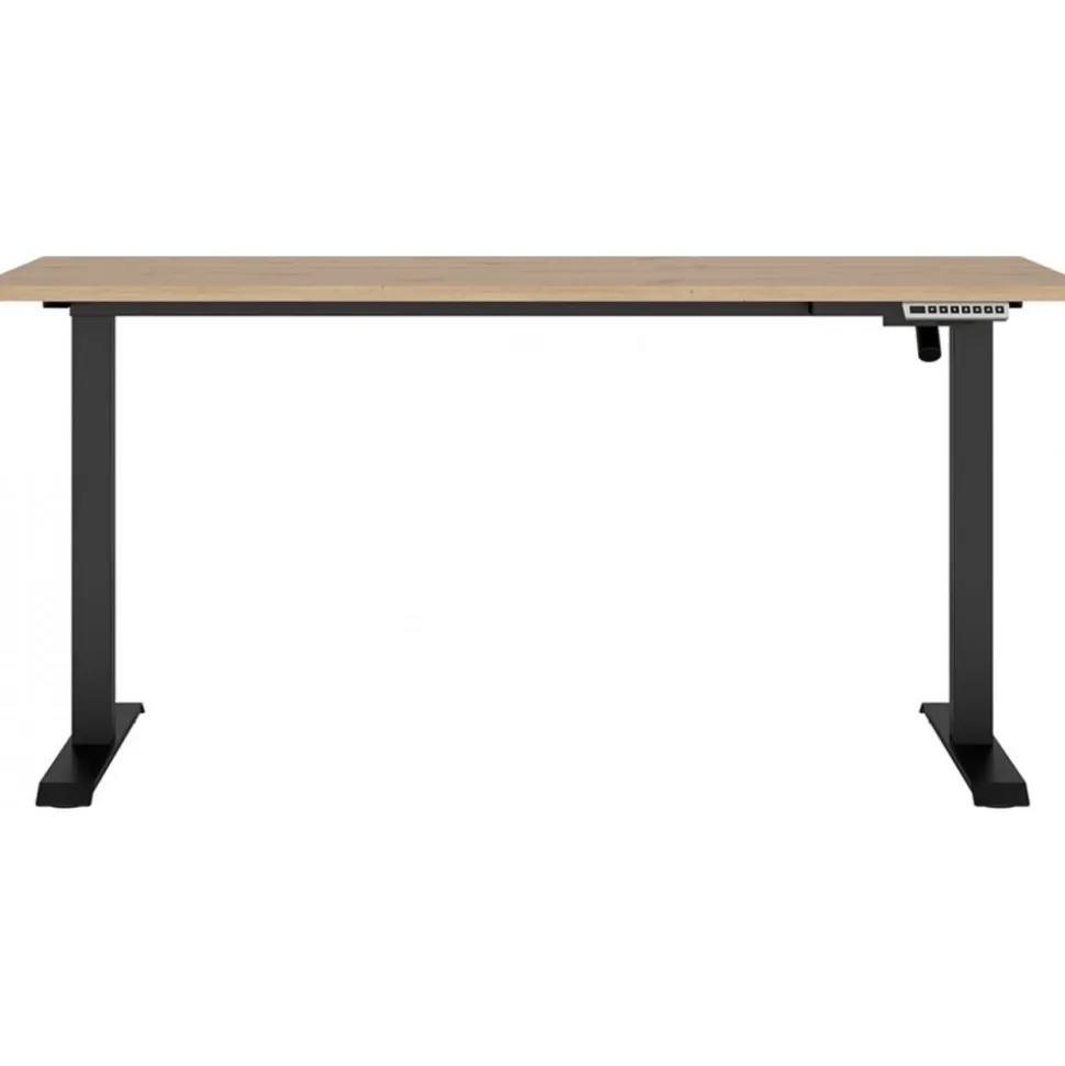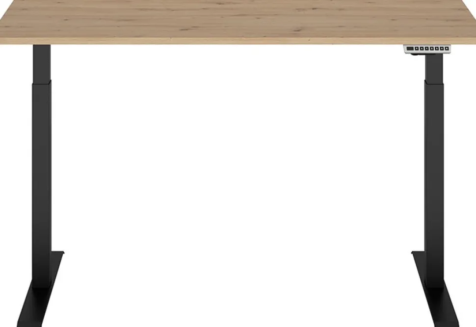 Höj och sänkbart av trä med underrede av metall. Kommer ihåg 4 olika höjdinställningar.