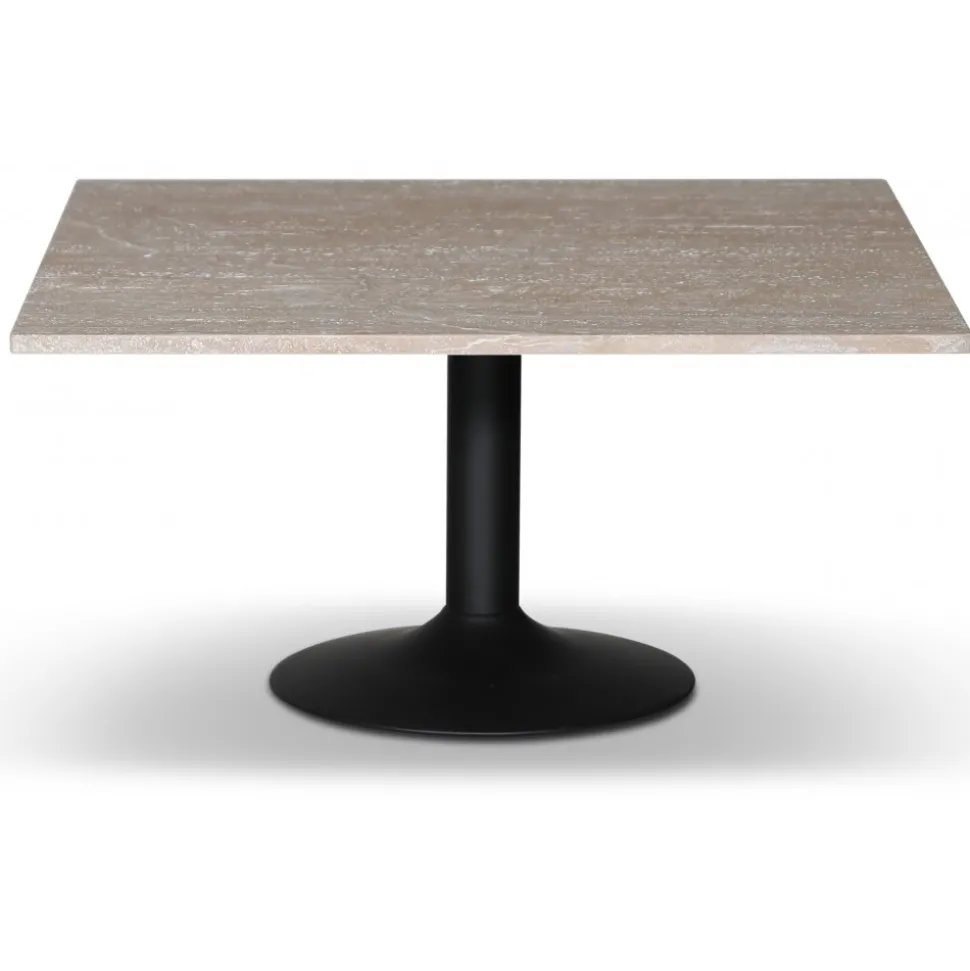 Ett snyggt med en lyxig modern känsla. Underredet är tillverkat av matt svartlackad trumpetfot och bordsskivan är av äkta kalksten, Travertin.