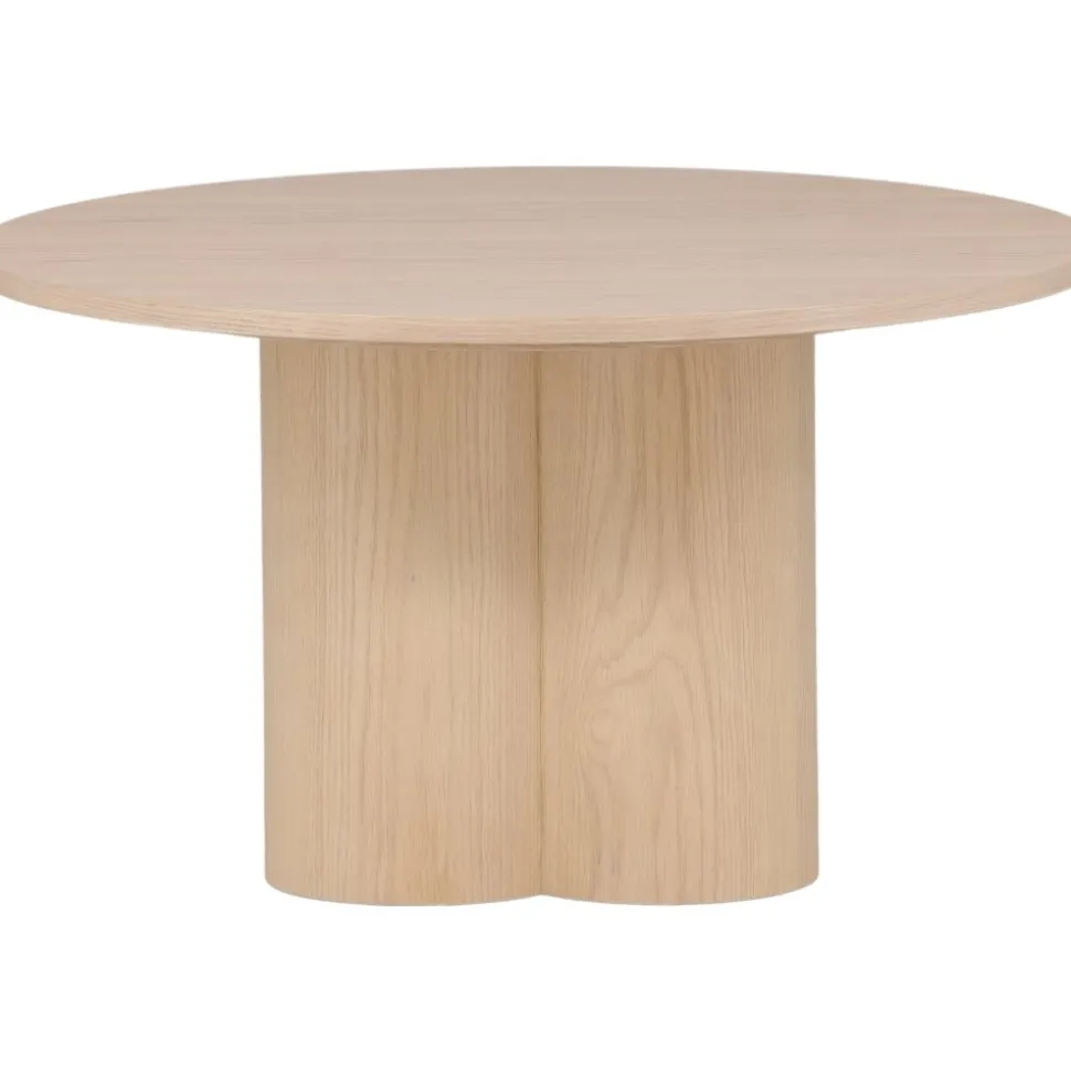 Modernt som imponerar med sina mjuka former, stilrena design och trendsäkra kulör. Soffbordet är tillverkat i vitputsad MDF och har en cylinderformad uppbyggnad vilket skapar en läcker dimension till bordet. Den runda toppskivan är fanerad och stommen utgörs av tre cylinderformade ben, samlade under bordets mitt. Bordet är otroligt användbart både som soffbord eller sidobord och den nätta storleken gör bordet enkelt att placera och flytta runt i hemmet.