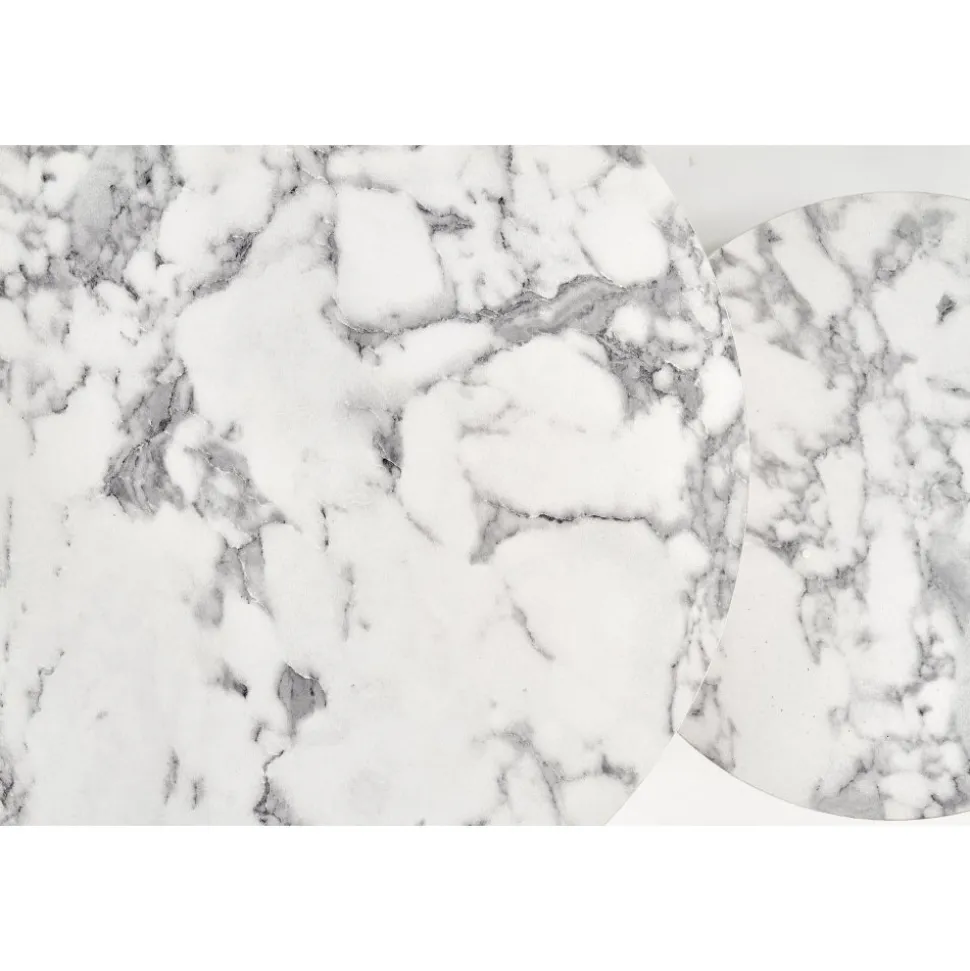 Soffbord set med 2 st Ø38/60 cm – Vit marmoreffekt/guld: