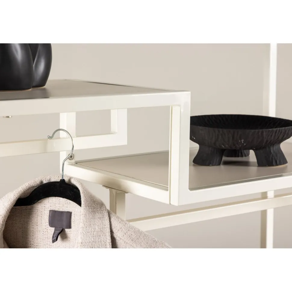 Möta en ny era av stil och ordning med vår klädhängare Staal. Tillverkad i robust stål och klädd i en mjuk beige nyans, är Staal inte bara en funktionell lösning utan även en modern inredningsdetalj som lyfter atmosfären i ditt hem. Staals eleganta och moderna design ger den en tidlös estetik som smälter in i olika rum. Den mjuka beige färgen skapar en lugn och harmonisk atmosfär, vilket gör Staal till ett perfekt tillskott i såväl sovrummet som i hallen. Placera den där du behöver en dos av både stil och organisation. Det som gör Staal unik är dess smarta hyllplan. Två mindre hyllplan ger dig möjlighet att ordna smycken, vikta kläder eller andra små accessoarer, medan det större hyllplanet ger plats för större föremål eller kanske ett dekorativt inslag. Inte nog med det – Staal erbjuder även plats för galgar, vilket gör den till en komplett lösning för dina klädförvaringsbehov. Placera och organisera dina kläder och accessoarer med lätthet med hjälp av Staal. Den är inte bara en praktisk klädhängare utan även en stilfull möbel som sätter tonen för rummet. Staal ger dig möjligheten att kombinera funktion och estetik på ett modernt och imponerande sätt. Välj Staal – din pålitliga följeslagare för att skapa ordning och modern stil i varje del av ditt hem!
