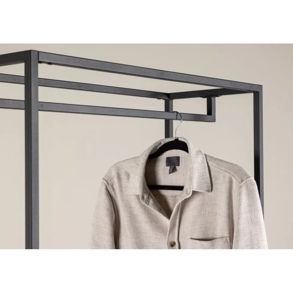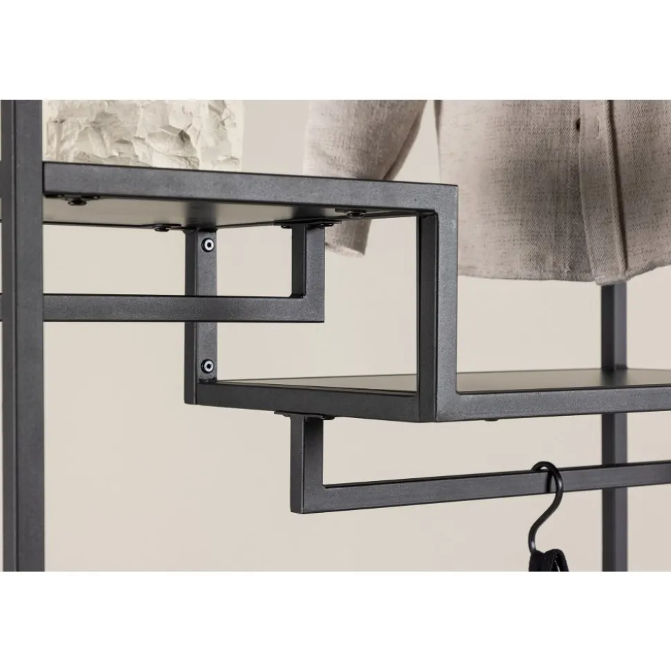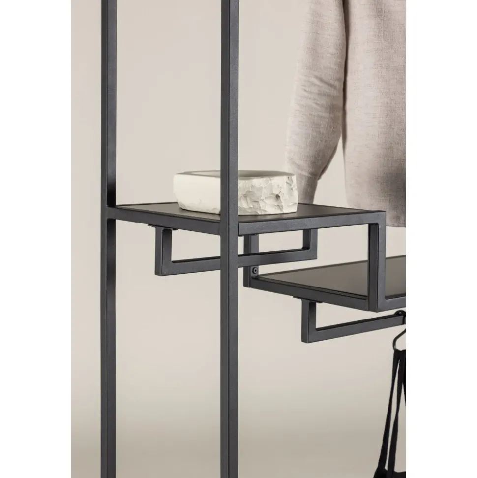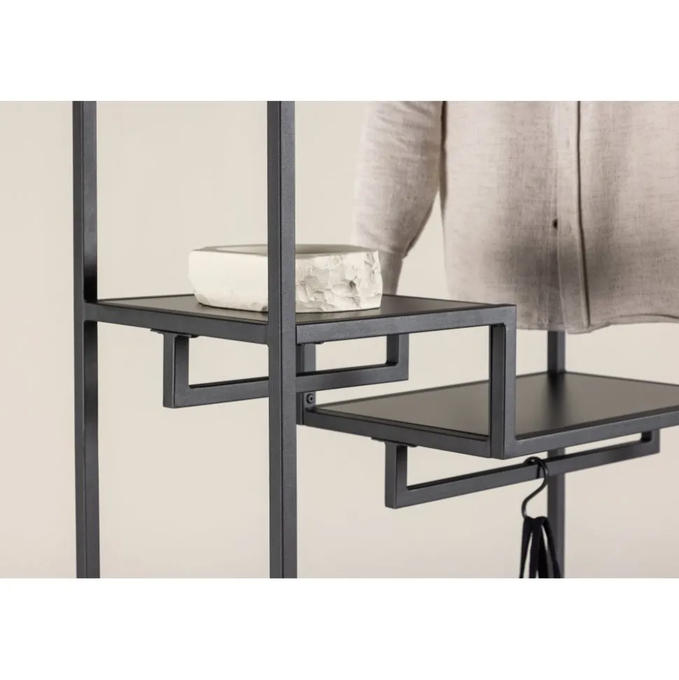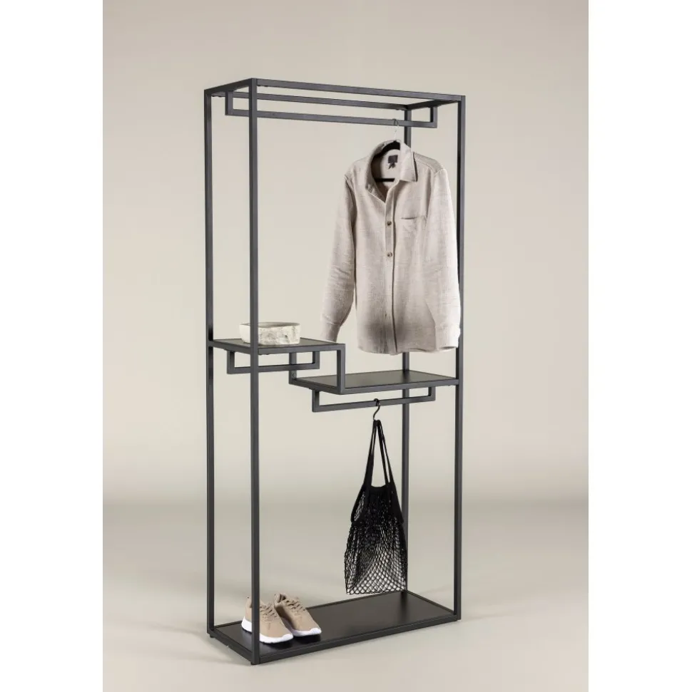 Möt stil och ordning med vår klädhängare Staal, den perfekta följeslagaren för att organisera dina textilier med en touch av modern elegans. Tillverkad i slitstarkt svart stål, är Staal inte bara en praktisk lösning utan också en smakfull inredningsdetalj som kompletterar ditt hem på bästa sätt. Staals enkla och snygga design ger den en tidlös estetik som passar perfekt in i olika rum. Den svarta färgen ger ett modernt uttryck och gör Staal till en stilig inredningsdetalj. Placera den i hallen, sovrummet eller var du än önskar en dos av stil och organisering. Det som sätter Staal i en klass för sig är dess smarta hyllplan. Två mindre hyllplan ger utrymme för smycken, vikta kläder eller andra små accessoarer, medan det större hyllplanet erbjuder möjlighet att ordna och visa upp större föremål med lätthet. Inte nog med det – Staals design inkluderar även plats för galgar. Häng upp dina favoritplagg på ett stilfullt sätt och låt dem vara både lättåtkomliga och välorganiserade. Organisera dina textilier med lekande lätthet med hjälp av Staal. Den är inte bara en klädhängare, utan en möbel som gör en statement. Staal ger dig möjligheten att kombinera funktionalitet med estetik på ett imponerande sätt. Välj Staal – din trogne partner för att skapa ordning och stil i varje hörn av ditt hem!