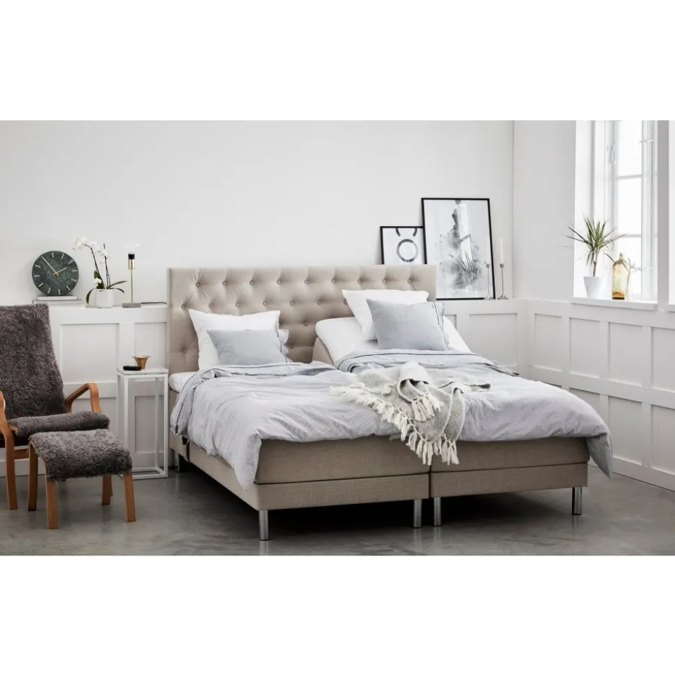 Sängen har ett 7-zons fjädersystem med extra hög pocketmadrass för att få så följsamt sovsystem som möjligt för kroppen. Bottenramarna är 12 cm höga och byggda med fingerskarvad furu!