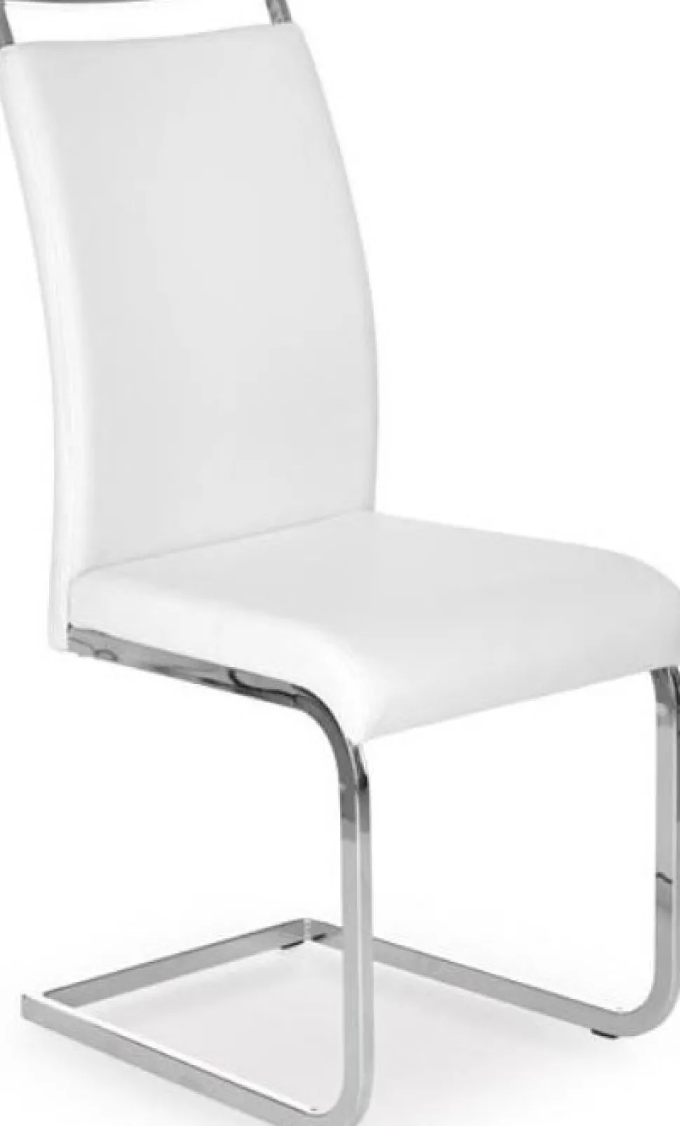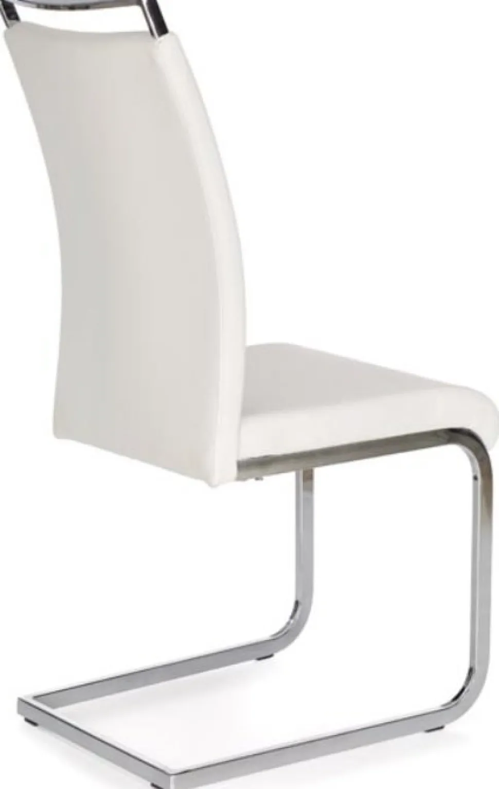 En härlig med en modern design. Stommen är tillverkad i kromad metall och sitsen är klädd med ett mycket behagligt vitt konstläder för maximal komfort.