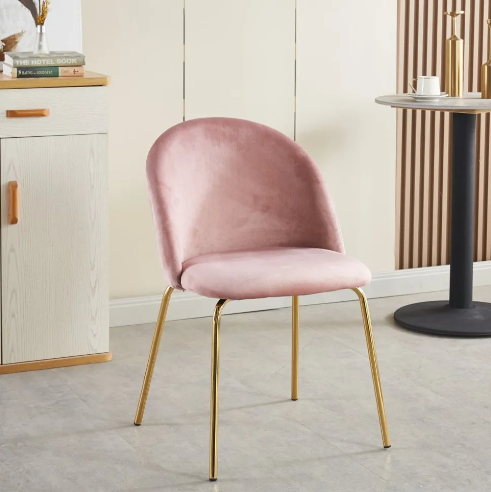 Stolens blanka mässingsben ger en sofistikerad kontrast till den rosa sammeten och bidrar till en lyxig känsla. Dessa ben är inte bara visuellt tilltalande; de erbjuder också stabilitet och hållbarhet, vilket gör att sammetsstolen står stabilt på alla ytor.