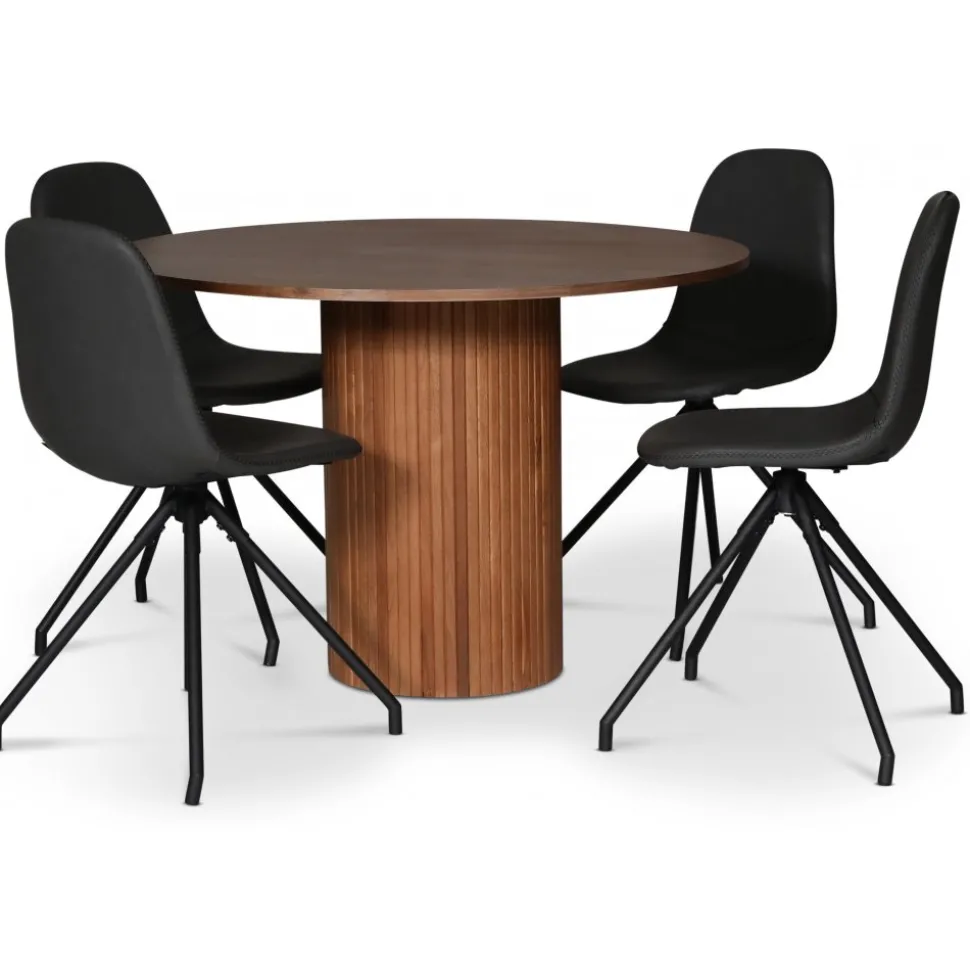 Bridge är en snurrbar med underrede av svart metall och klädsel av 100% svart PU. Runt stolen löper en söm som en dekorativ och utstickande detalj.