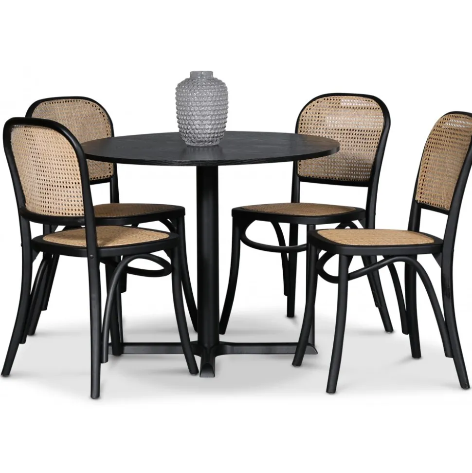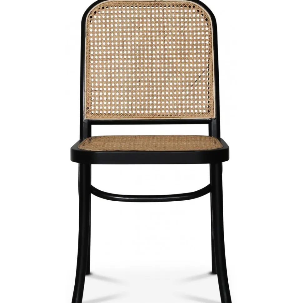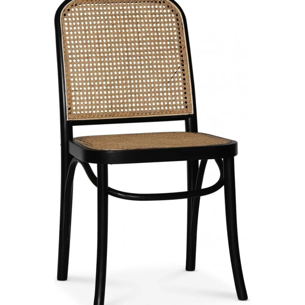 Upptäck en perfekt kombination av traditionellt hantverk och modern design med denna stilrena stol. Tillverkad i svart böjträ, erbjuder stolen en elegant estetik som passar i alla typer av inredningar. Sits och rygg är klädda i rotting, vilket ger en naturlig och varm känsla, samt en unik touch som skiljer denna från andra.