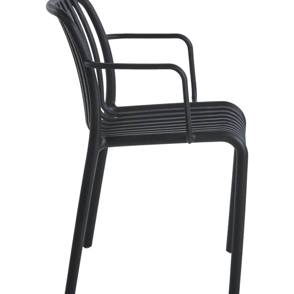 Noa är en svart i väderbeständig polypropylene-plast. Stapelbar . Matstolen går att använda både inomhus och utomhus.