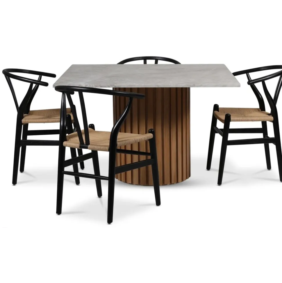 Sumo 120×120 cm inkl. 4 st Brandon svarta matstolar – Oljad ek / Silver marmor: