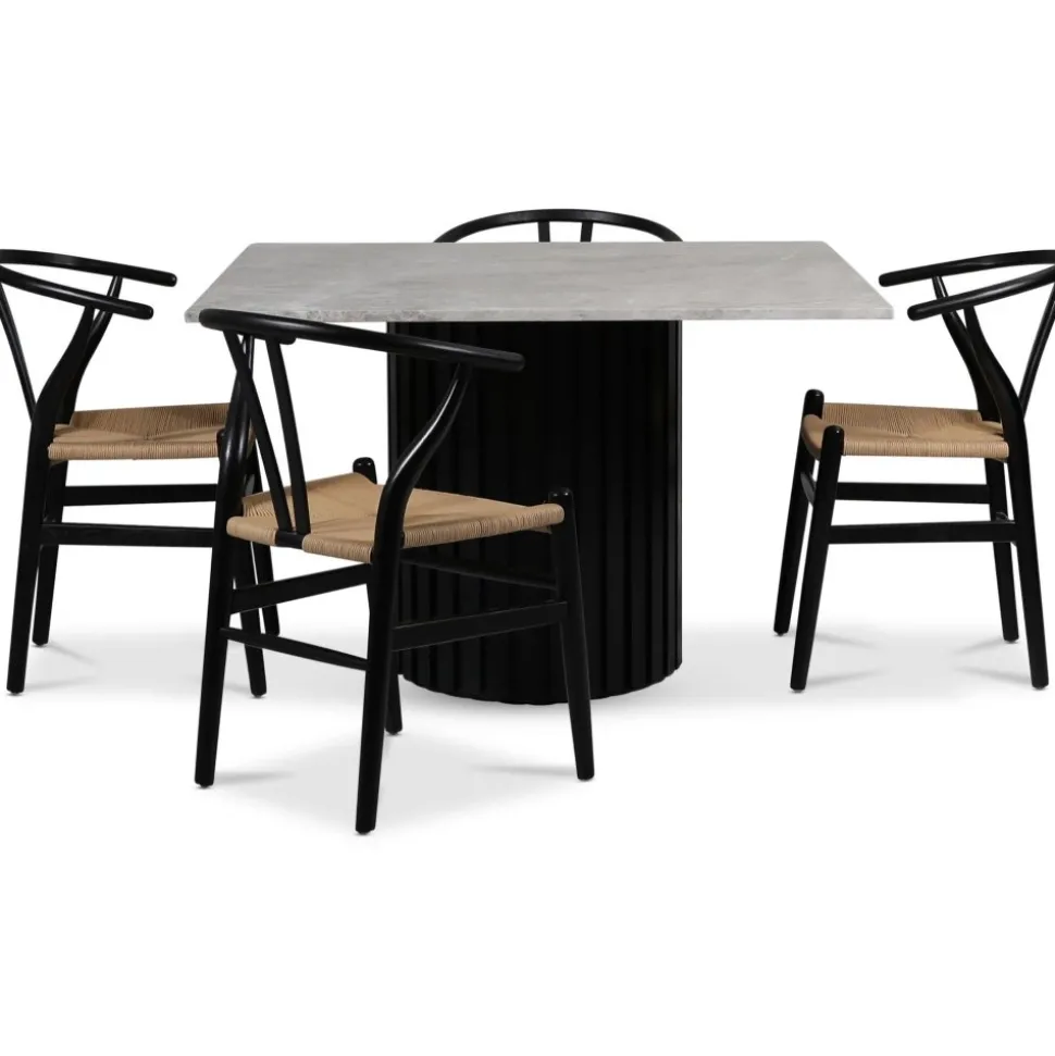 - Sumo matgrupp 120×120 cm inkl. 4 st Brandon svarta matstolar – Svartbets / Silver marmor