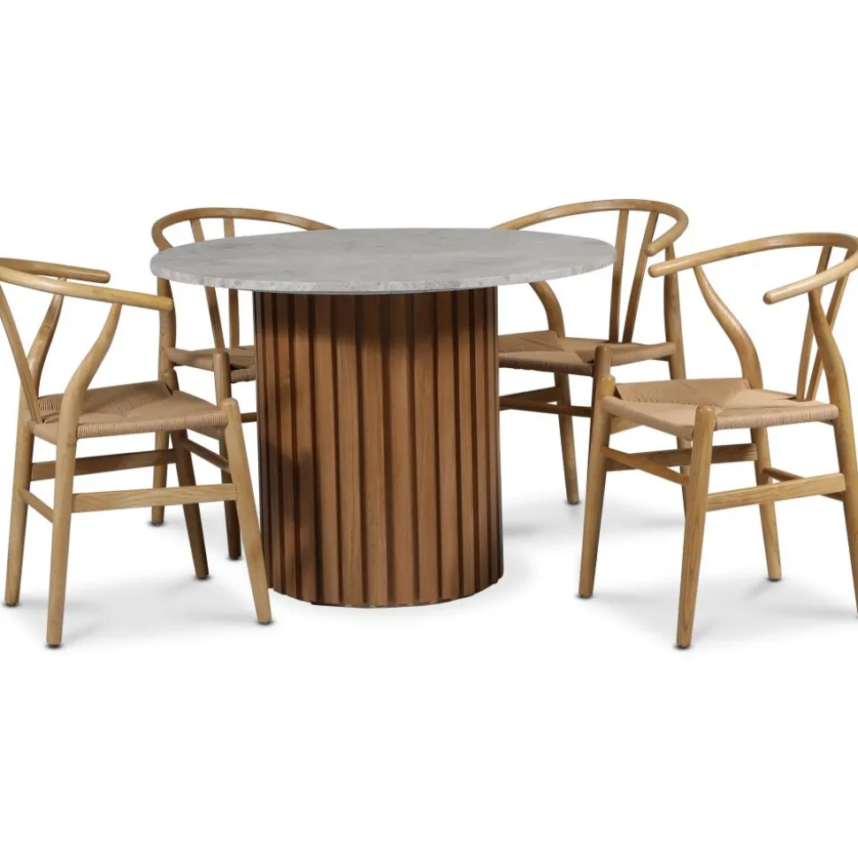 Klassiska matstolar i karm-modell med stomme i almträ och flätad repsits av papperssnöre. Levereras monterad.