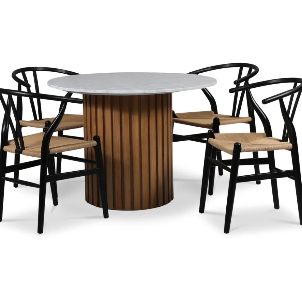 Klassiska matstolar i karm-modell med svartlackad stomme i almträ och flätad repsits. Levereras monterad. Design som varar i framtiden.
