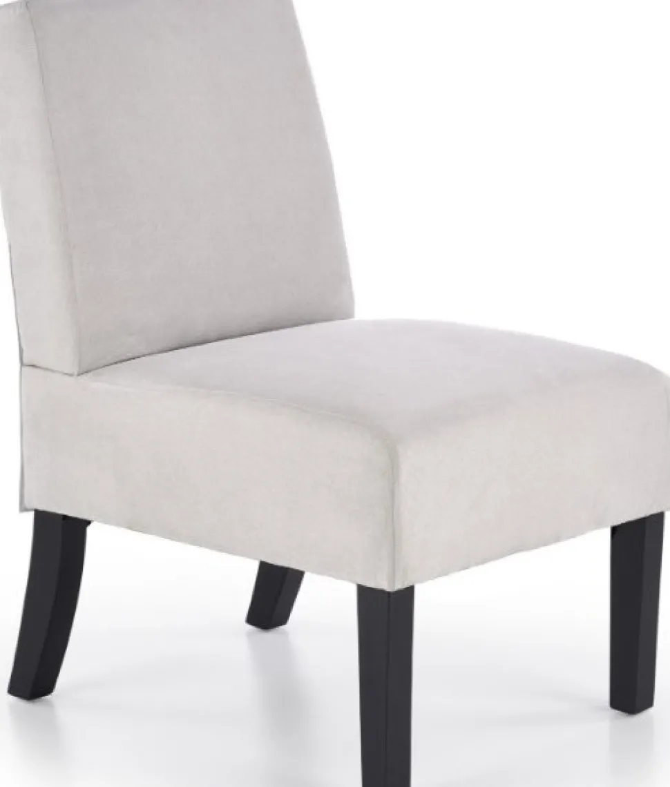 En härlig med en stilren design. Fåtöljen är tillverkad av solid gummiträd med svartmålade ben och sitsen är klädd med ett mycket behagligt tyg för maximal komfort.