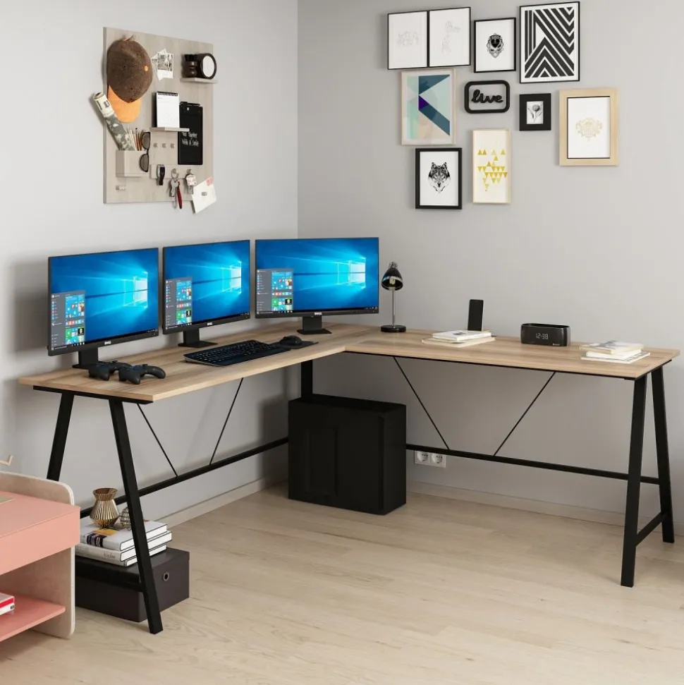 Skrivbord av melaminbelagd spånskiva.