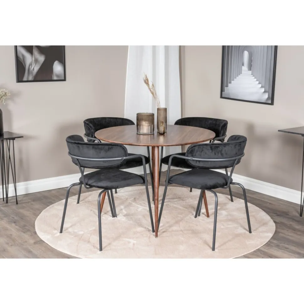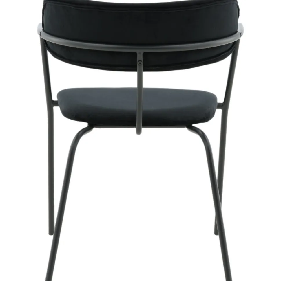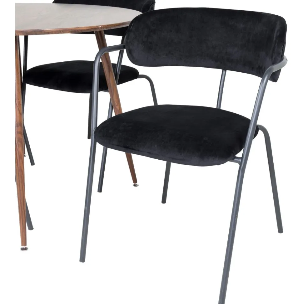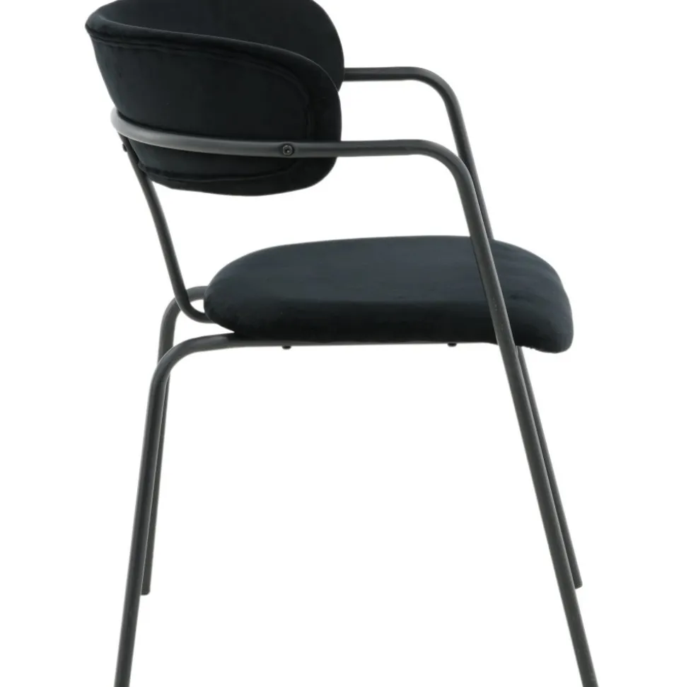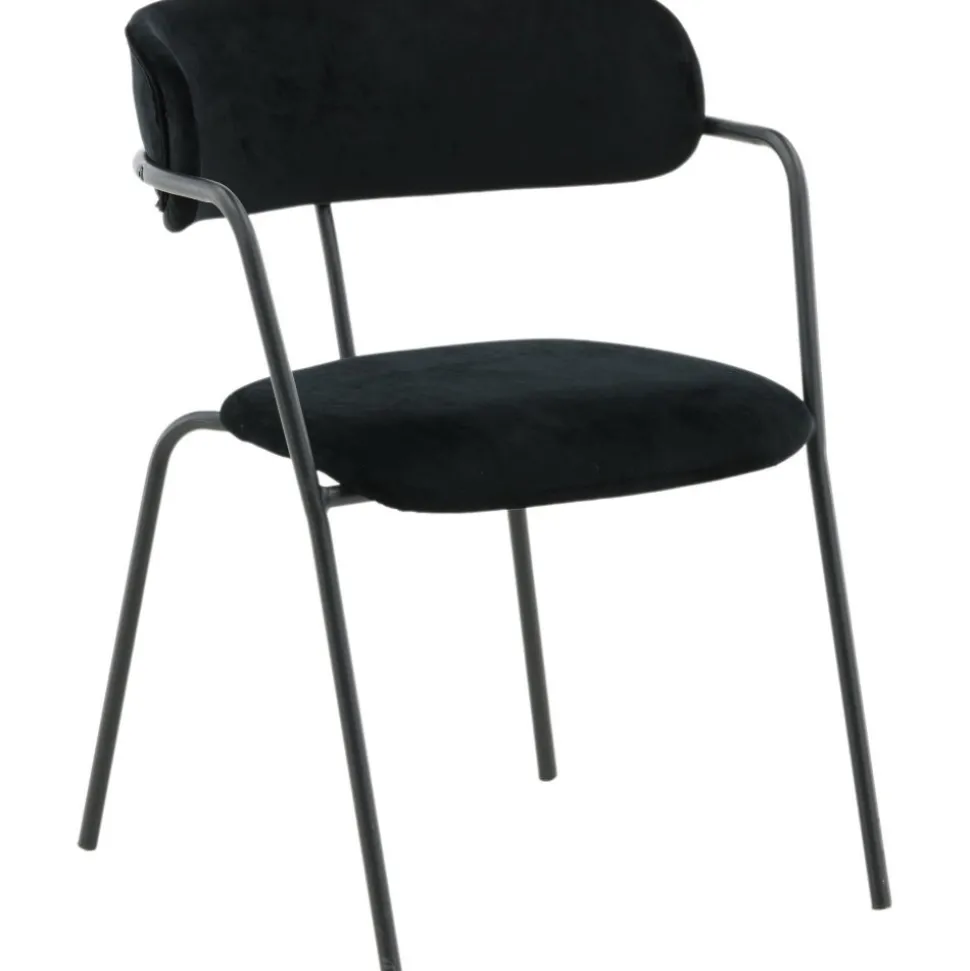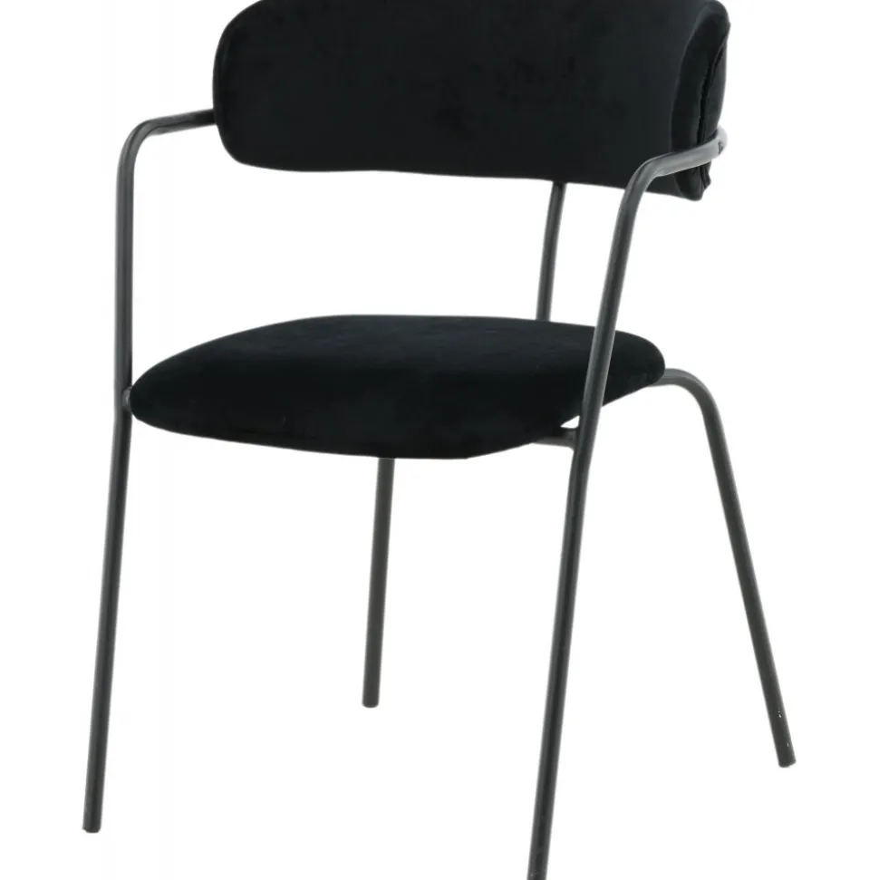 Karmstol av metall och plywood, klädd med polyestertyg.