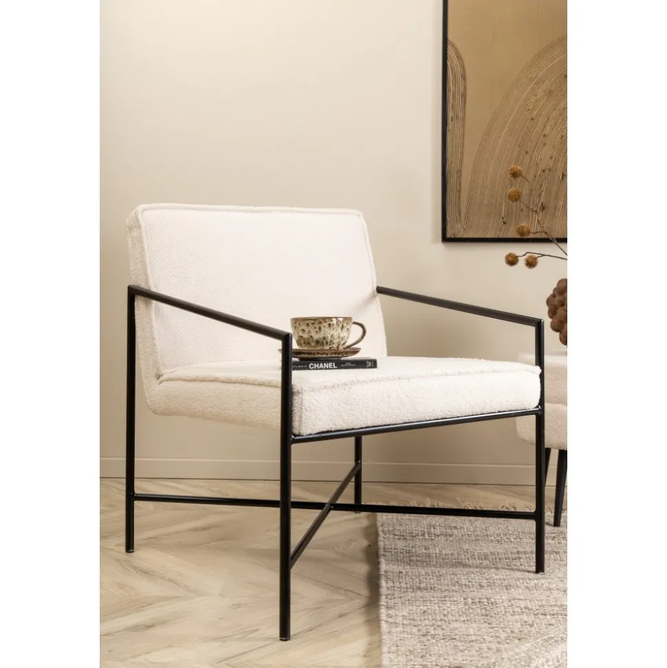 Fåtölj av järn, klädd med teddytyg.