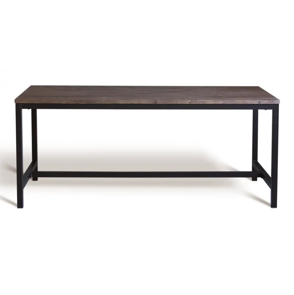 Matbord av brunbetsad ek folierad MDF med ben av metall. Stabilt och tåligt .