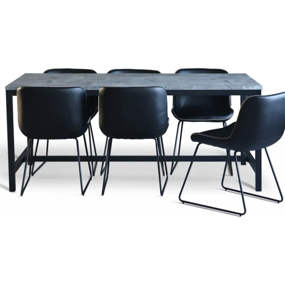 - Texas matgrupp med 8 st Texas matstolar Svart PU + Texas matbord betong 200 cm