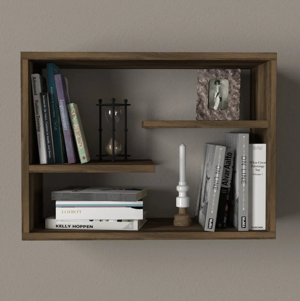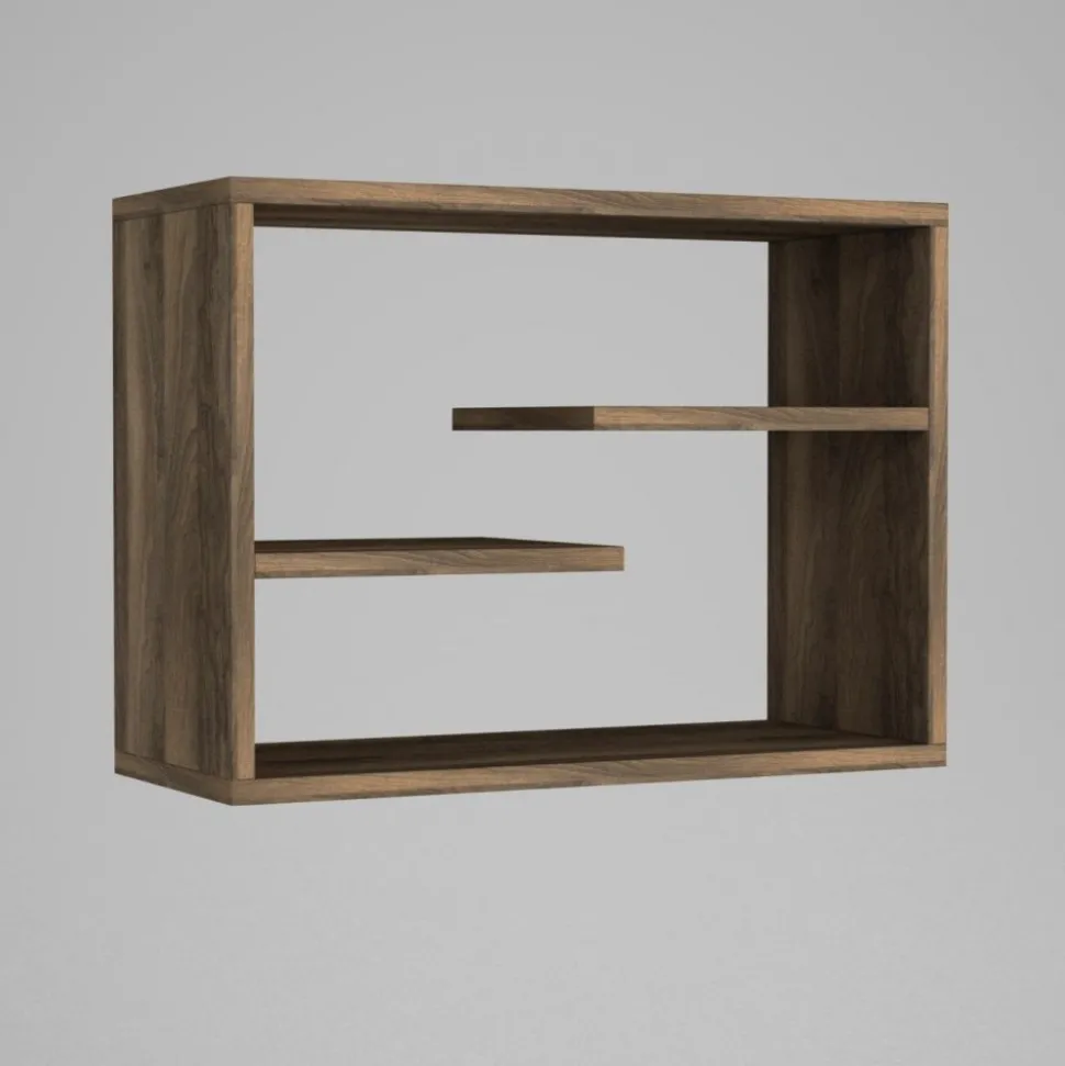 Vägghylla av melaminbelagd spånskiva.