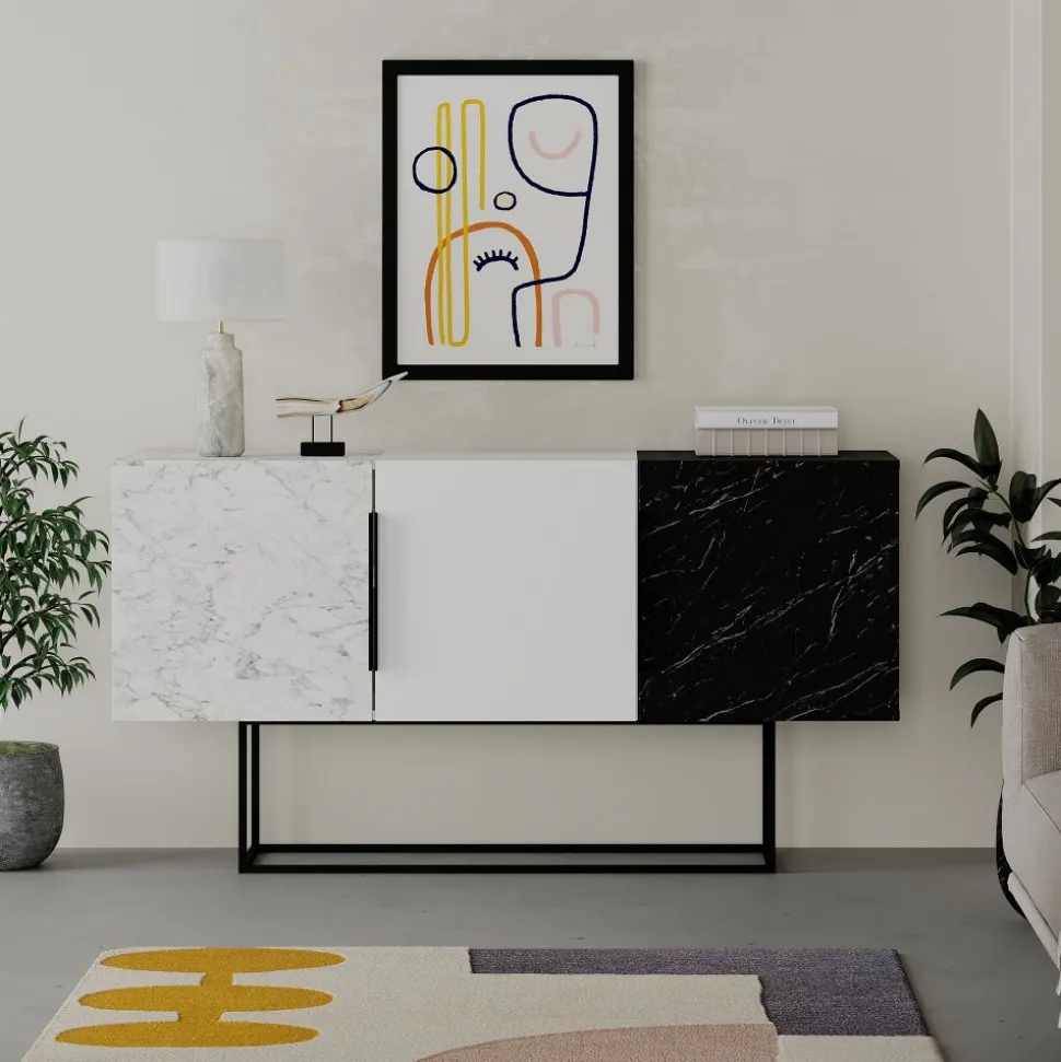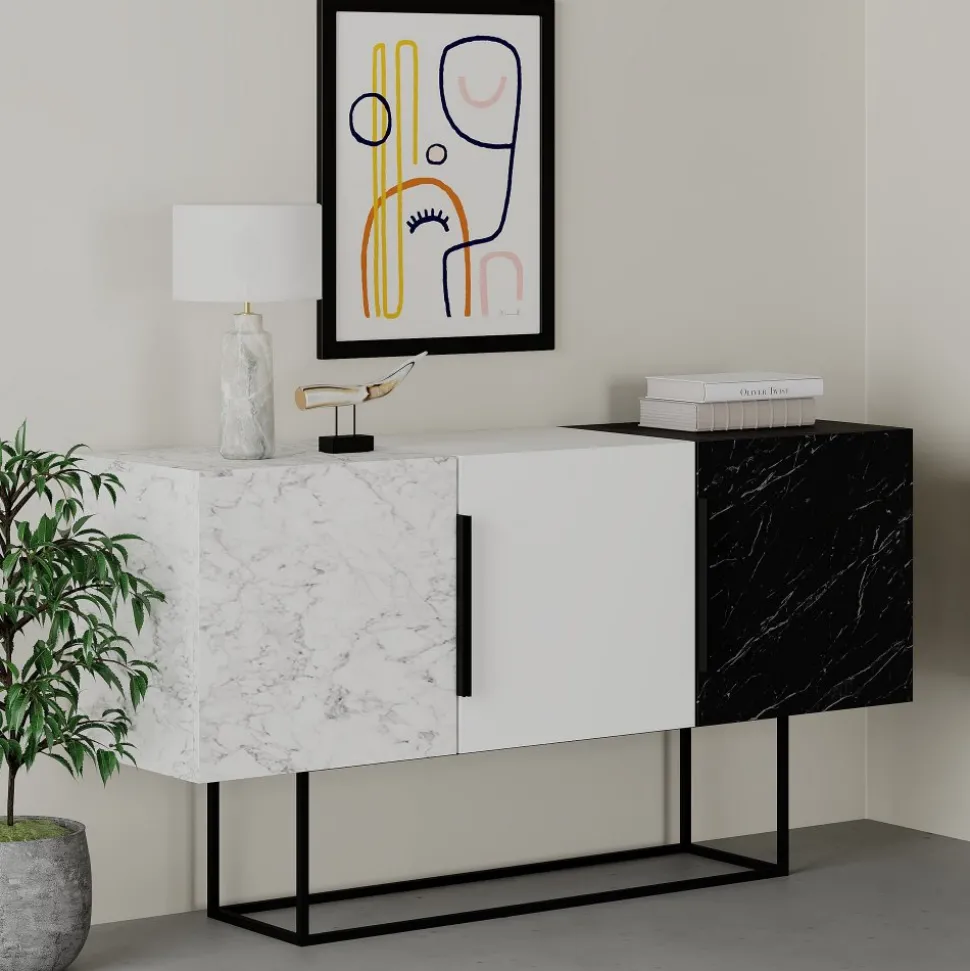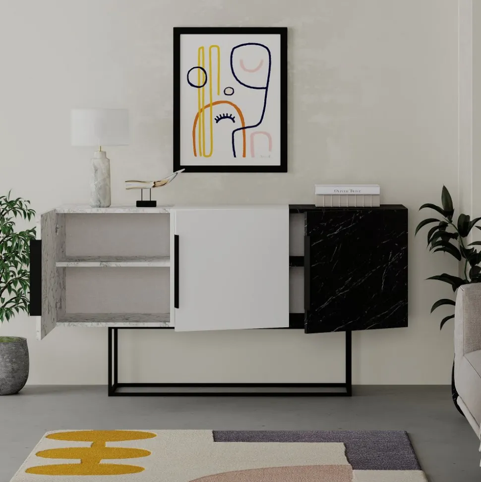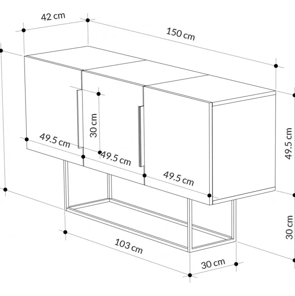 Skänk av melaminbelagd spånskiva. Maxvikt: 60 kg.