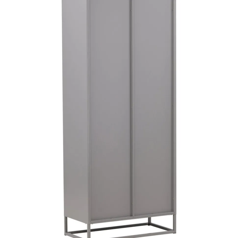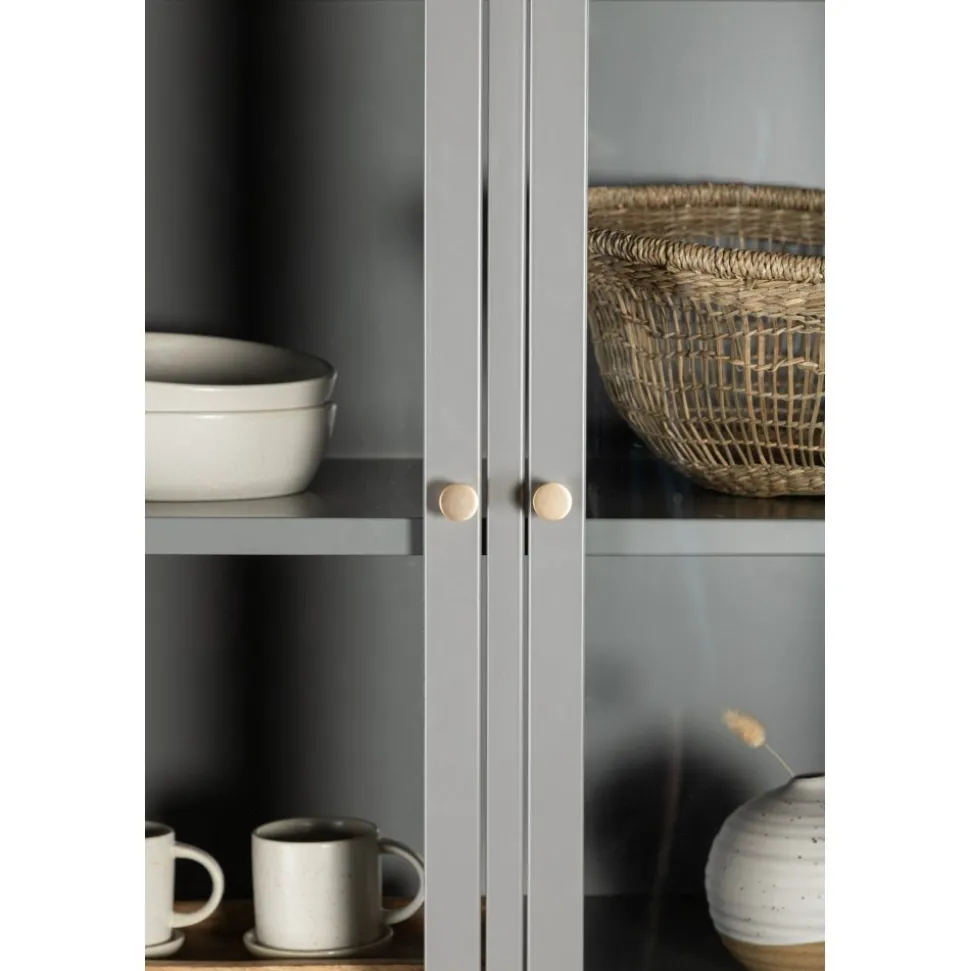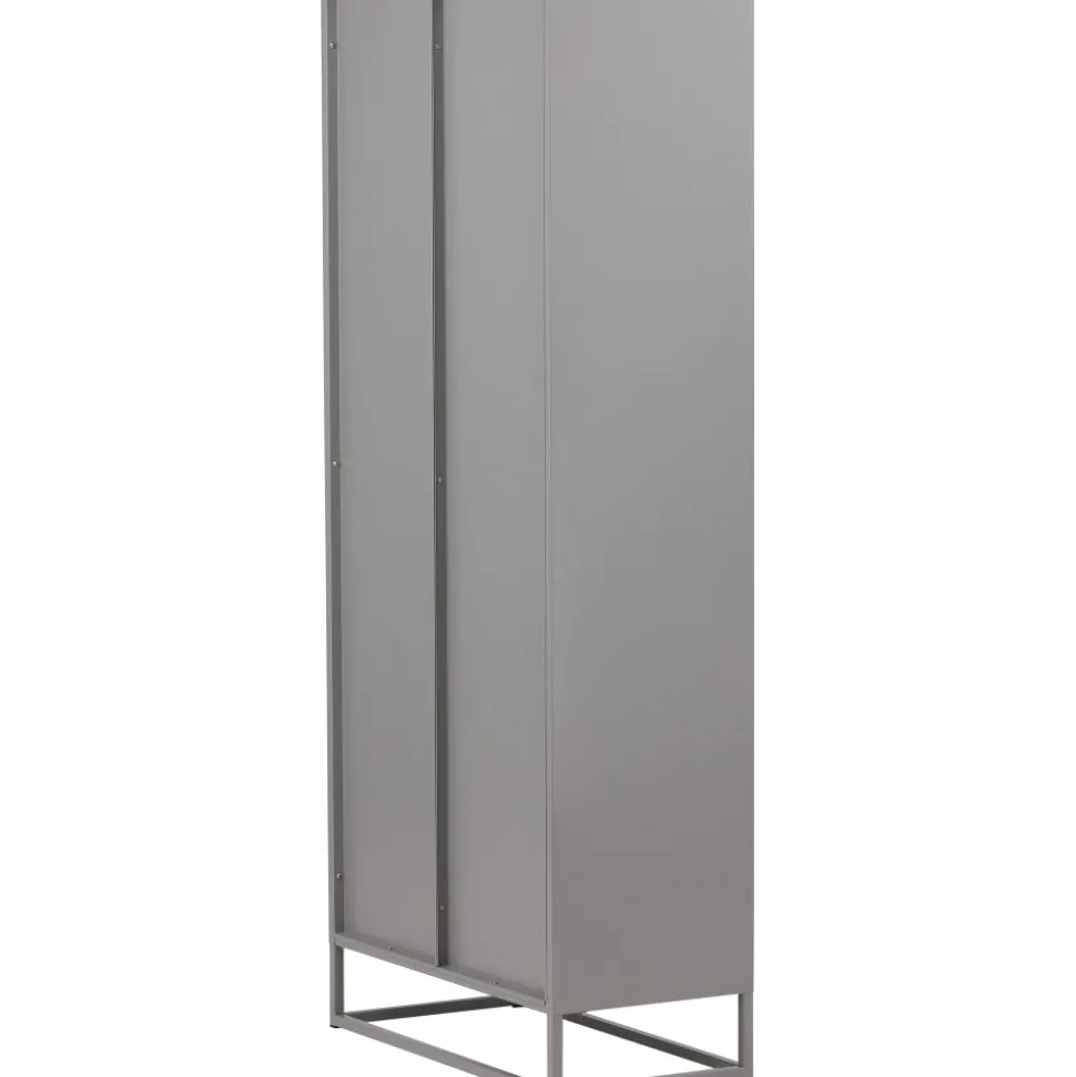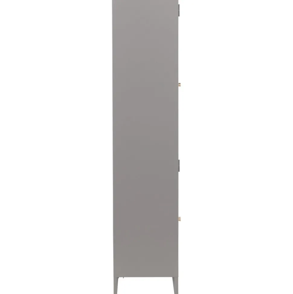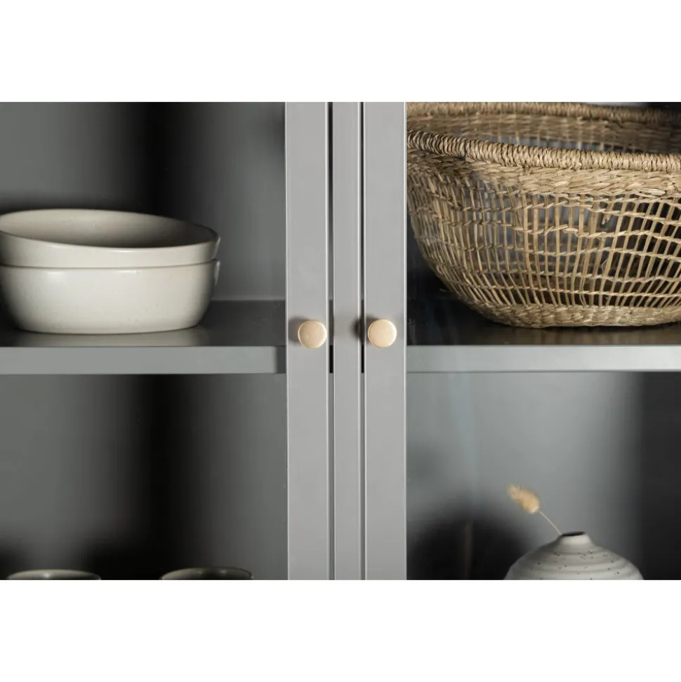 Vårt omtyckta skåp Torsnäs i modern industriell design är tillverkad i pulverlackerat ljusgrått stål och står sig över tid. Skåpet möjliigör både dold och öppen förvaring och passar utmärkt i det moderna vardagsrummet. Ovandelen har två höga dörrar i glas med en ram av pulverlackerad ljusgrått stål och fyra avlastningsytor för öppen förvaring. Nederdelen har två lägre dörrar med dold förvaring i pulverlackerad ljusgrått stål och två avlastningsytor. Samtliga dörrar har mässingfärgade knoppar vilket blir en snygg detalj. Hela skåpet vilar på en öppen ram i ljusgrått pulverlackerad stål som ger en luftig känsla och underlättar också för dammsugaren. Möblera ditt hem stilrent och smart.