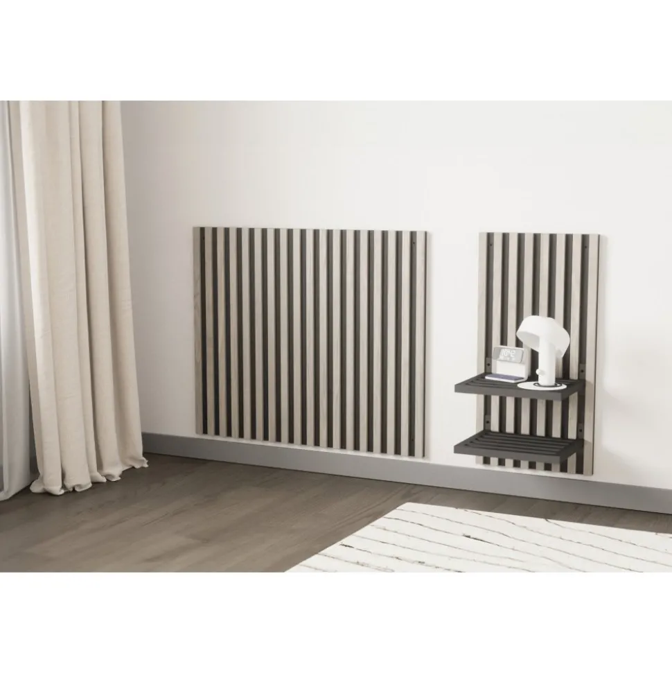 Låt din kreativitet flöda och din inredningsfantasi flyga med vår underbara vitputsade väggpanel från serien Toulon. Denna eleganta detalj ger dig möjligheten att omvandla ditt sovrum till en plats av modern lyx och stil. Tillverkad av högkvalitativt MDF-material i en djupsvart bas, ackompanjerad av vitputsade ribbor som skapar en subtil kontrast och modernitet med sin färgkombination. Detta är inte bara en väggpanel – det är en inbjudan till eget skapande i hemmet. Bygg ditt alldeles egna sängbord på ett sätt som passar just dig, mot en väggpanel i nätt storlek. Lägg till böcker, glasögon eller en kopp ångande te och känn hur bekvämligheten och stilen förenas. Givetvis är användningsområdena flera – låt väggpanelen också lysa upp din hall och skapa en välkomnande atmosfär som gör att du stolt kan välkomna gäster in i ditt hem. Eller fäst upp vid tv-väggen med adderade ljusstakar för en modern touch. Stilfullt och mångsidigt ? det är vad vår väggpanel kan erbjuda dig!