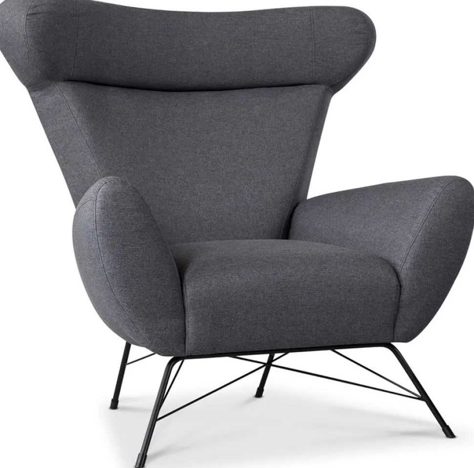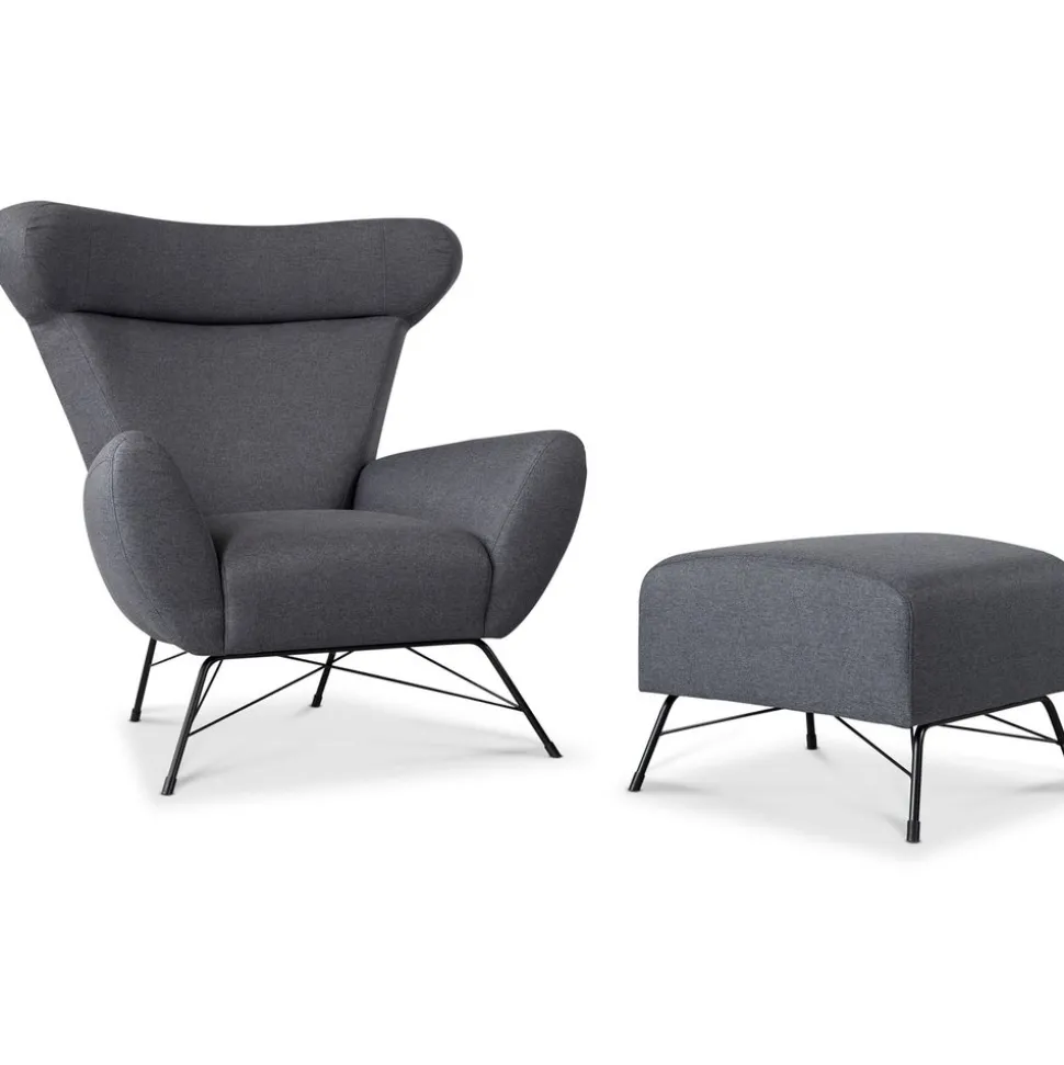Town är en modern öronlappsfåtölj för både hemmiljö och offentlig miljö. Fåtöljen är klädd i ett mörkgrått mjukt och slitstarkt tyg som passar in i de flesta miljöer. Svartlackat metallunderrede. Fotpall finns att komplettera med i samma serie.