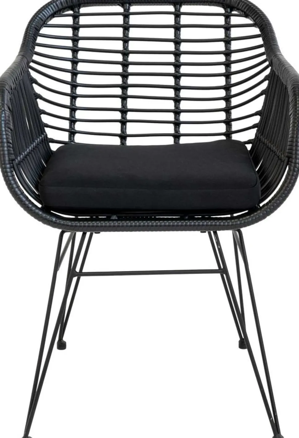 Stol i svart polyrotting med dyna.