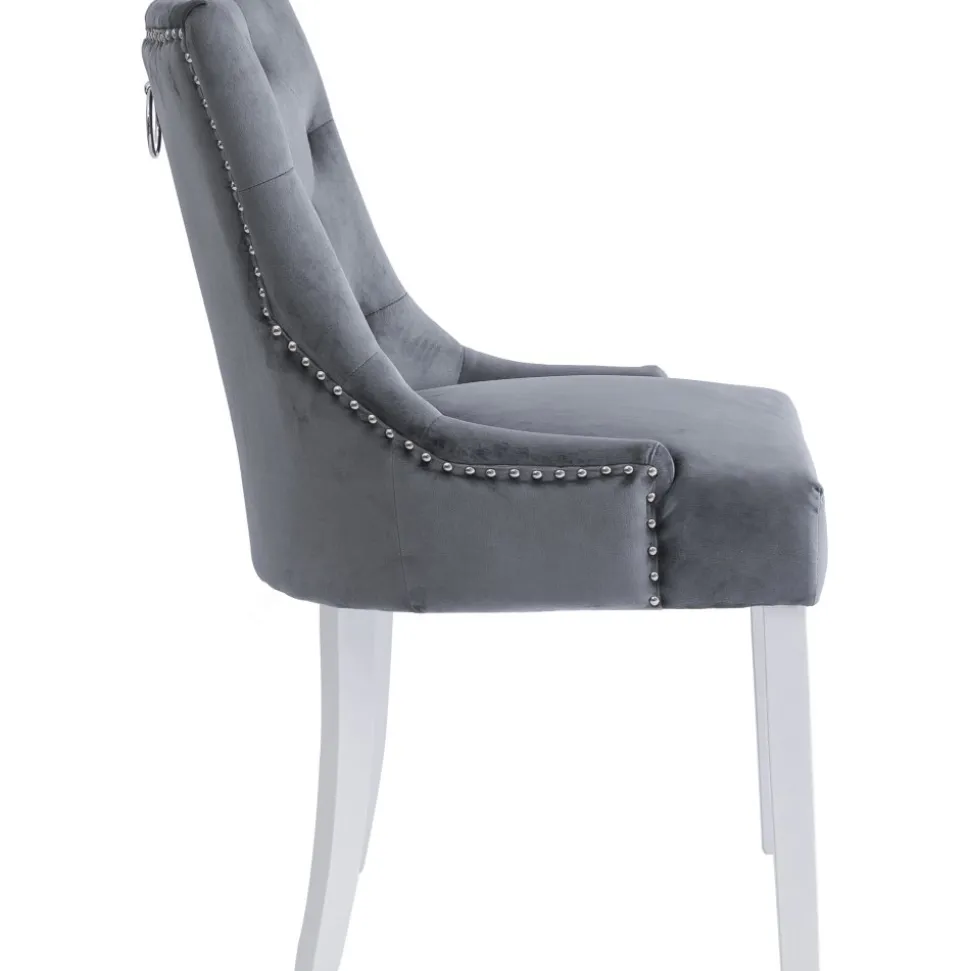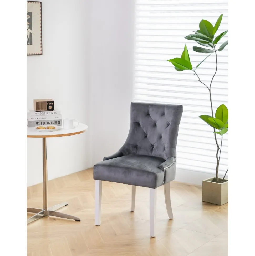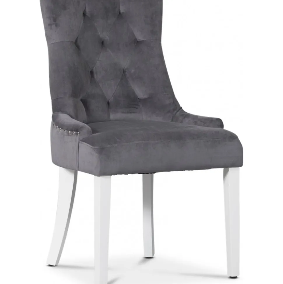 Matstolen Tuva är en av våra mest populära matstolar som kombinerar komfort och elegans. Denna gråa sammetsstol är designad för att passa in i alla hem, oavsett stil och inredning, och med sina vita ben ger den ett stilfullt utseende.
