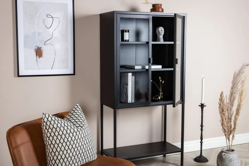 Tysslinge är en serie helt i metall i varierande färg och storlek. Utrustade med glasade dörrar och generös höjd på ben. Skåpen är pulverlackerade för en fin och hållbar ytbeläggning.