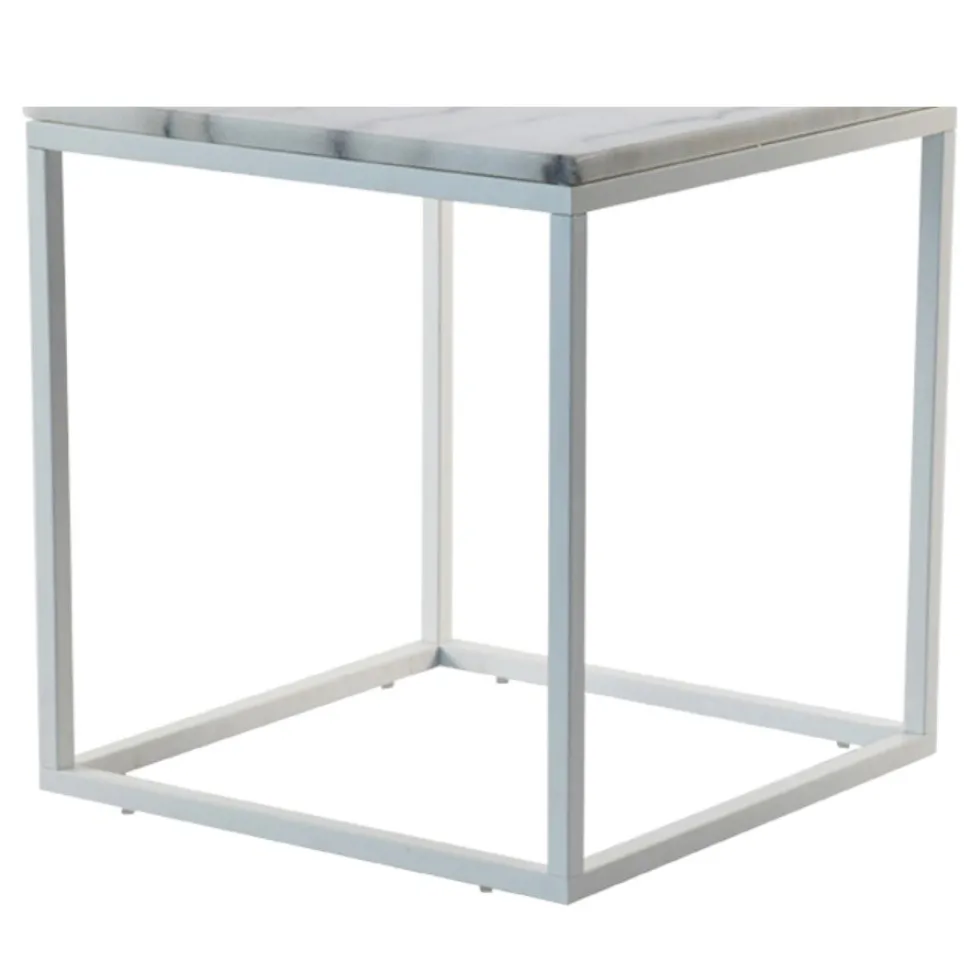 Undcerrede för och sidobord i vitlackad metall. Passar skivor som är minst 50×50 cm och större