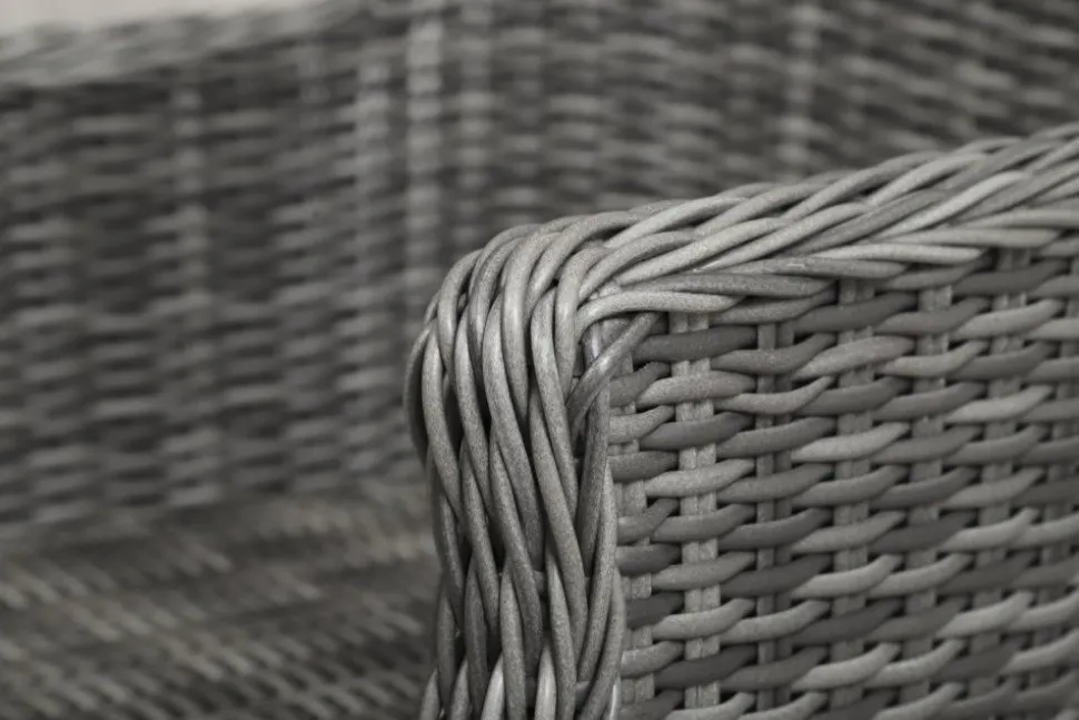 Jacksonville fåtölj i grå konstrotting, stomme av aluminium. Mörkgrå dynor av polyester för god sittkomfort.