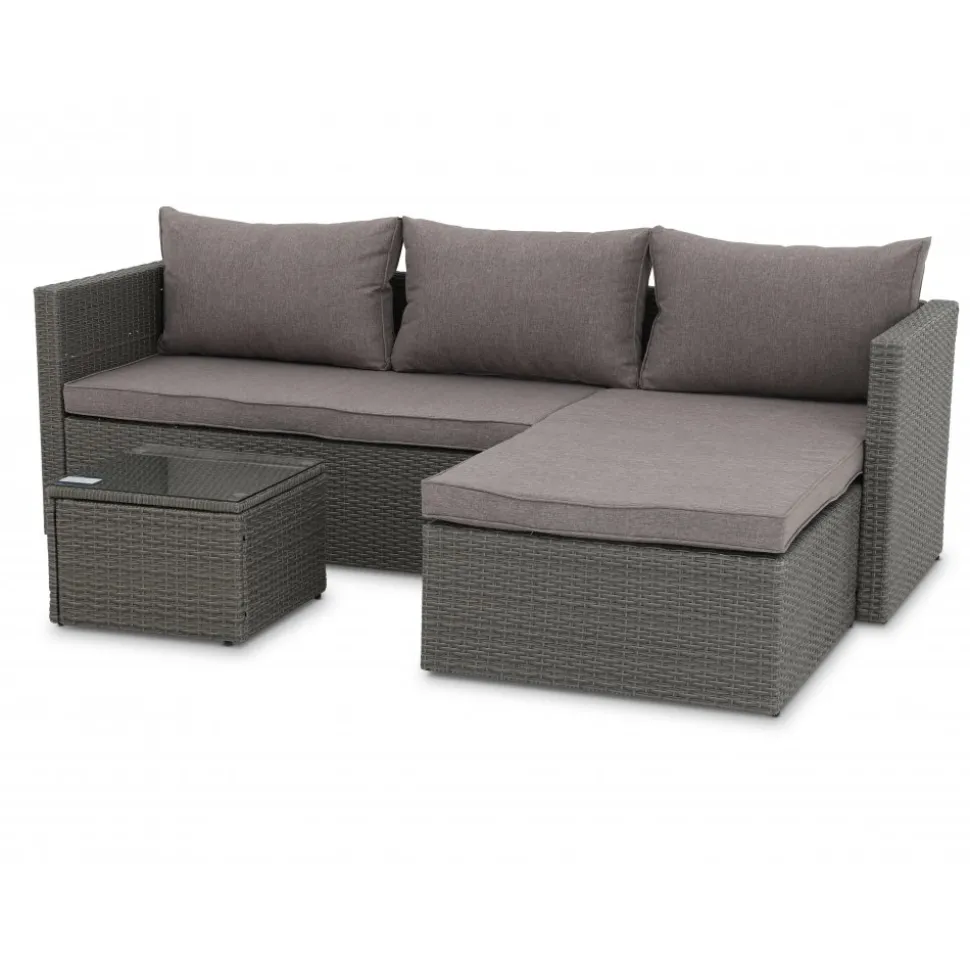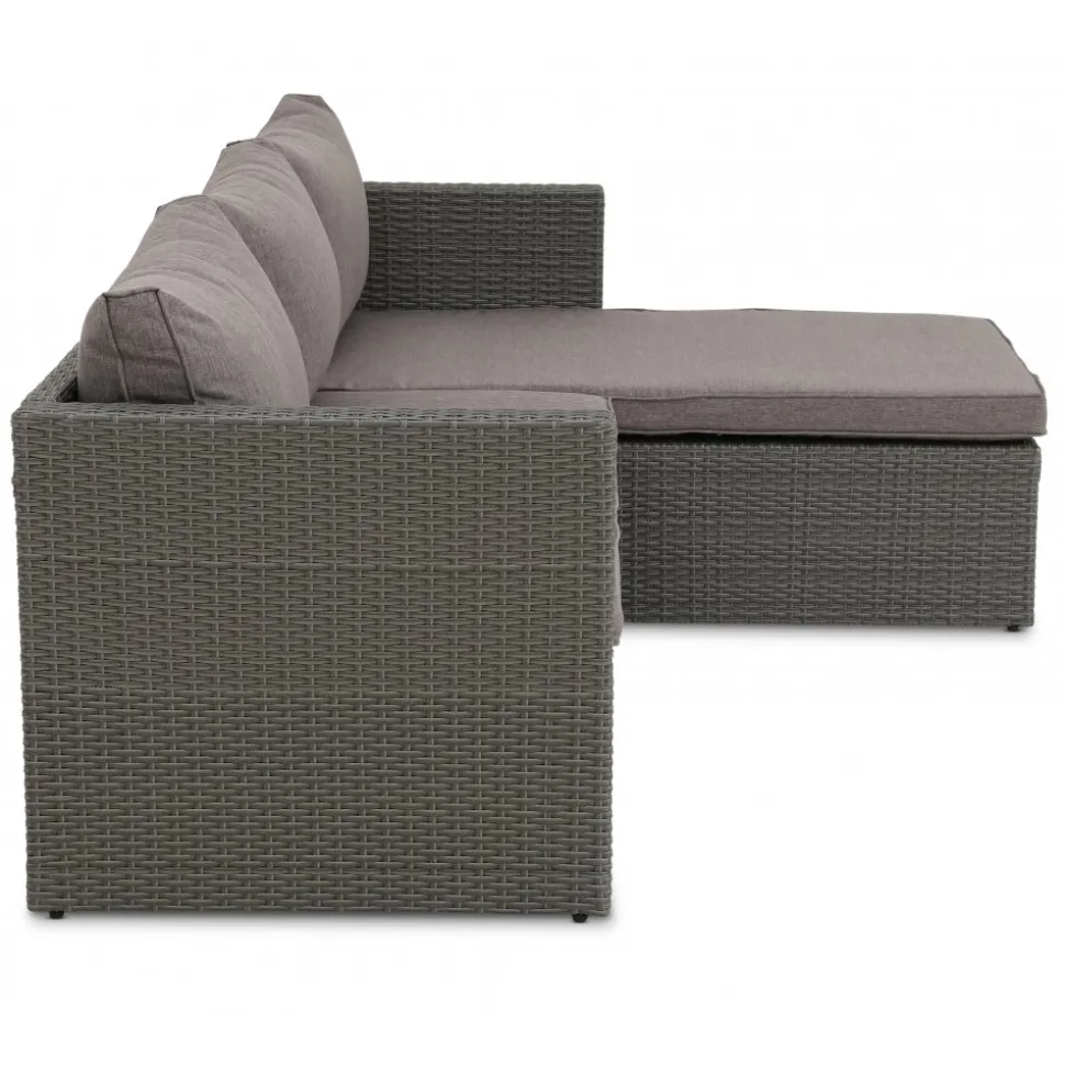 Miami ger dig en klassisk soffgrupp i konstrotting innehållande en nätt divansoffa samt ett soffbord. Färgen är gråmelerad vilket gör att den passar in i de flesta utemiljöer. Sköna sittdynor klädda med grå klädsel. Här kan du tillbringa många fina stunder med familj och vänner. Divandelen går att placera antingen till höger eller till vänster.