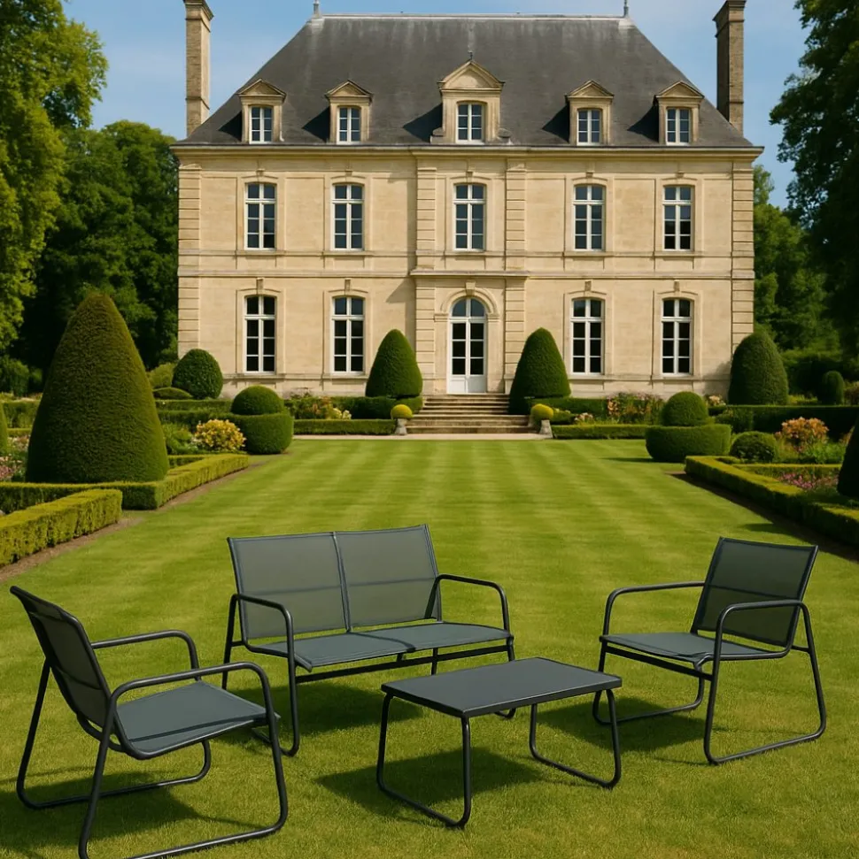 Laguna loungegrupp i en stilren design med svart textilen och stomme i svartlackad metall. Loungegruppen består av soffa, soffbord och två stycken fåtöljer. En nätt och stilren utegrupp som är lätt att placera i trädgården eller på uteplatsen.