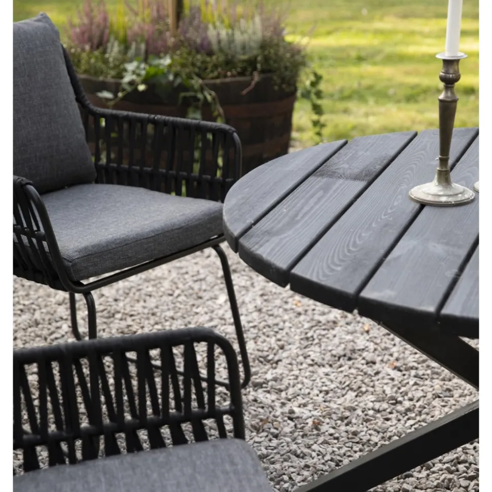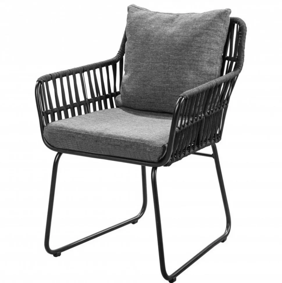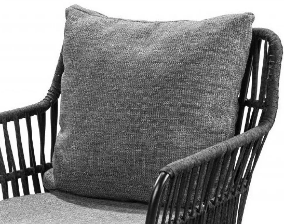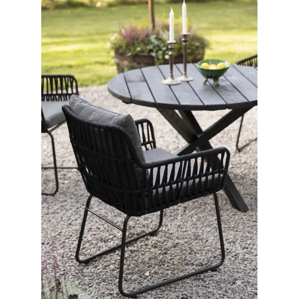 - Utestol med rep och grå dynor
