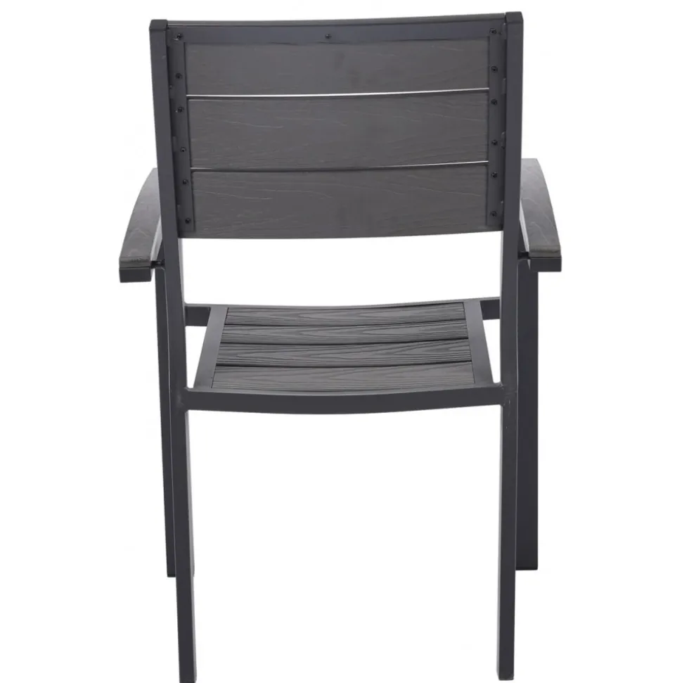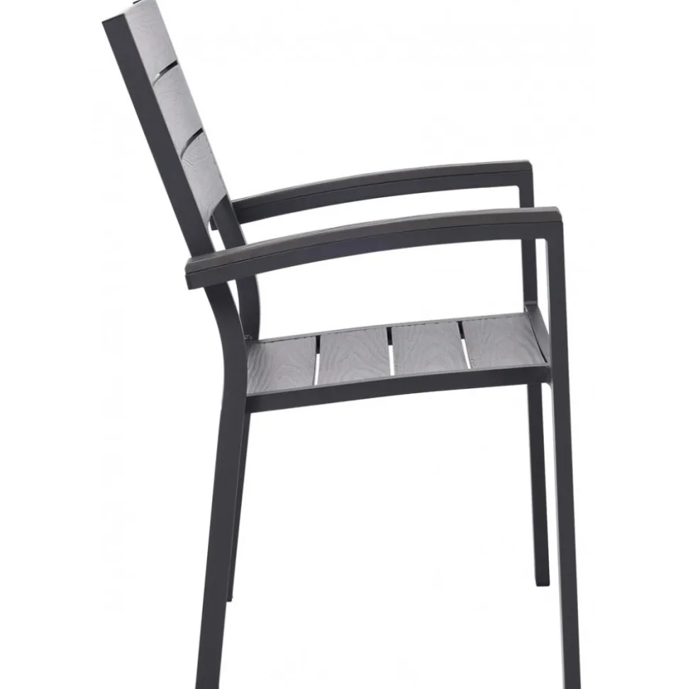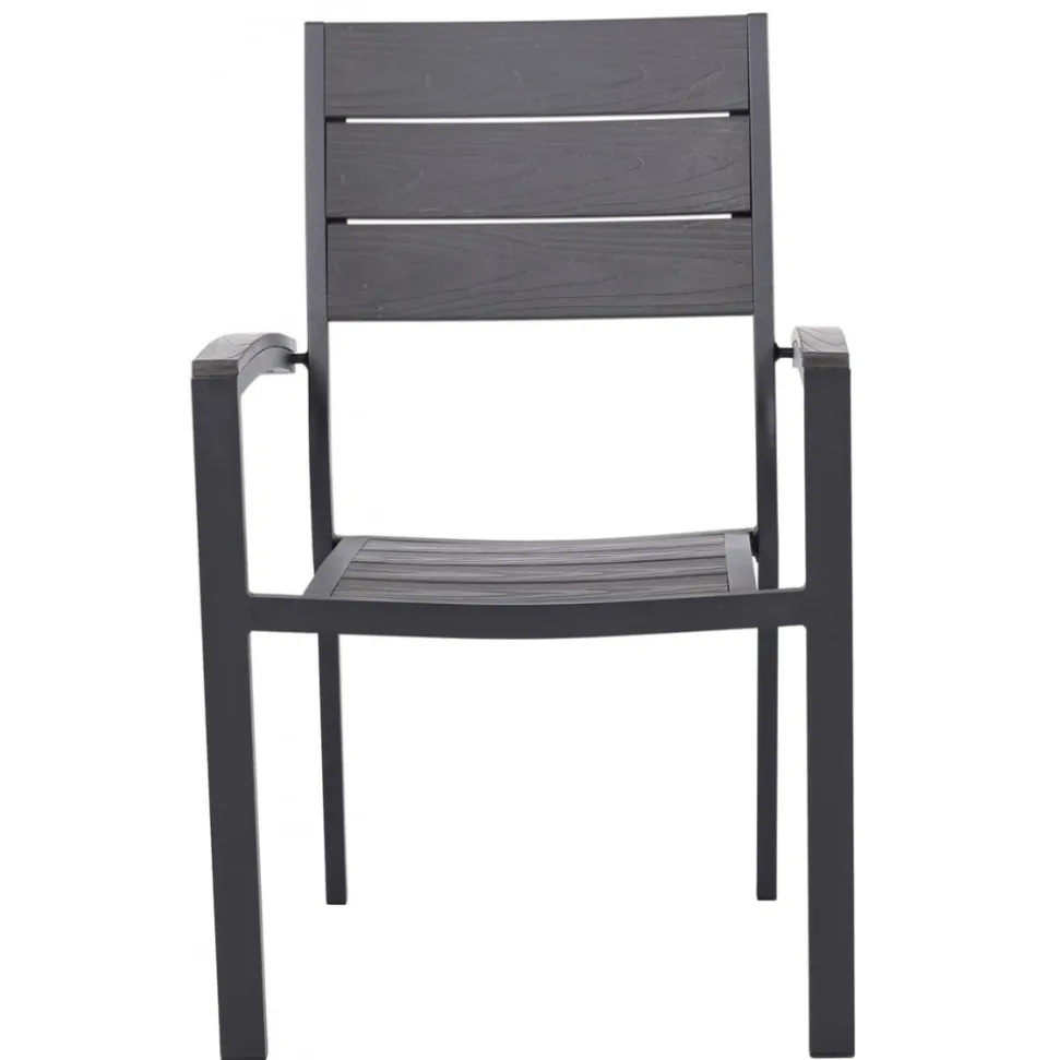 Las Vegas utemöbelserie består av bord och i svartlackad aluminiumstomme med gråfärgad Noonwood detaljer. Kombinationen ger en fräsh möbelserie för uteplatsen och altanen. Lättskötta då allt material är vädertåligt. Stolen är en karmstol med armstöd. Snygga detaljer i Nonnwood.
