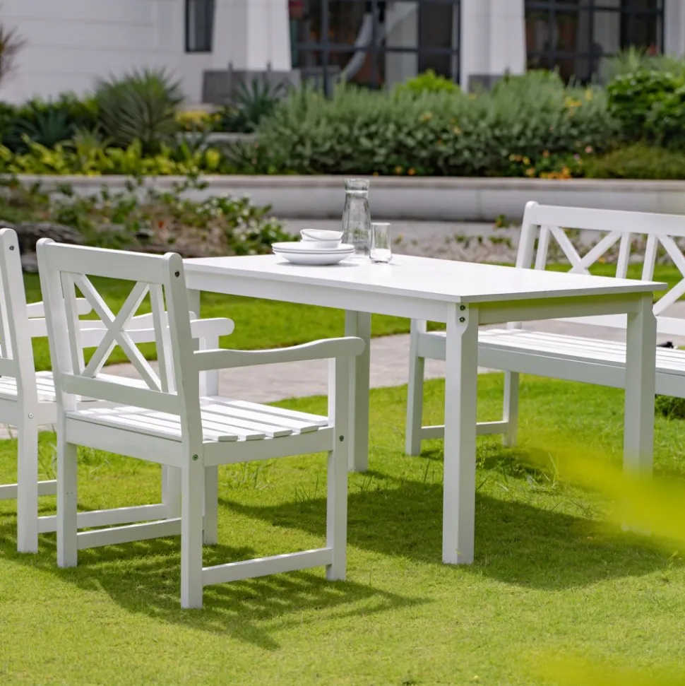 Bohus vit utefåtölj är den klassiska fåtöljen för uteplatsen, tillverkad av Skånska Möbelhuset, förenar den tidlös design med modern stil. Med sin eleganta vita finish och robusta stomme i vitmålad furu, ger fåtöljen ett fräscht och inbjudande intryck. Dess hållbara konstruktion gör den idealisk för utomhusbruk, medan den stilrena designen gör det enkelt att kombinera med olika och dekorationer.