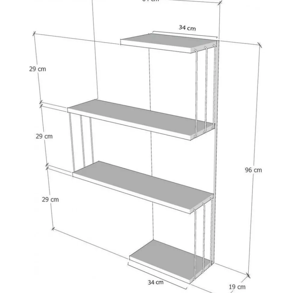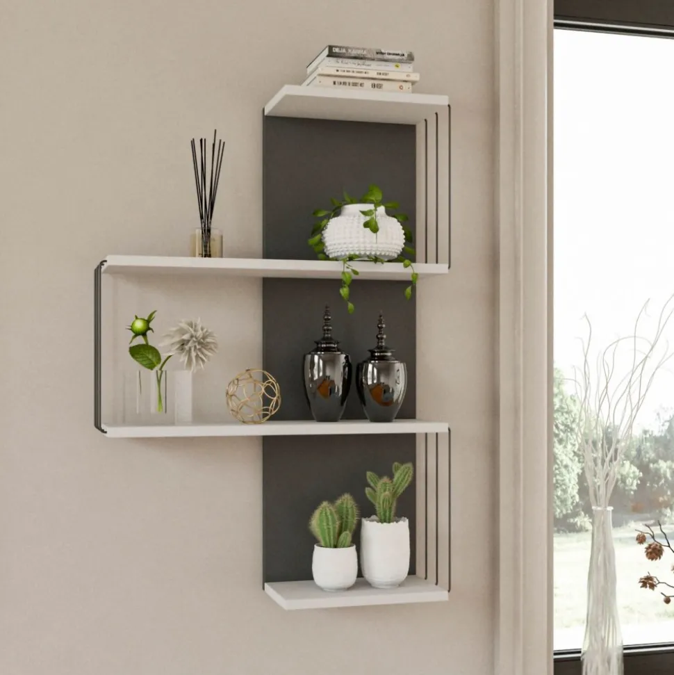 Vägghylla av melaminbelagd spånskiva.