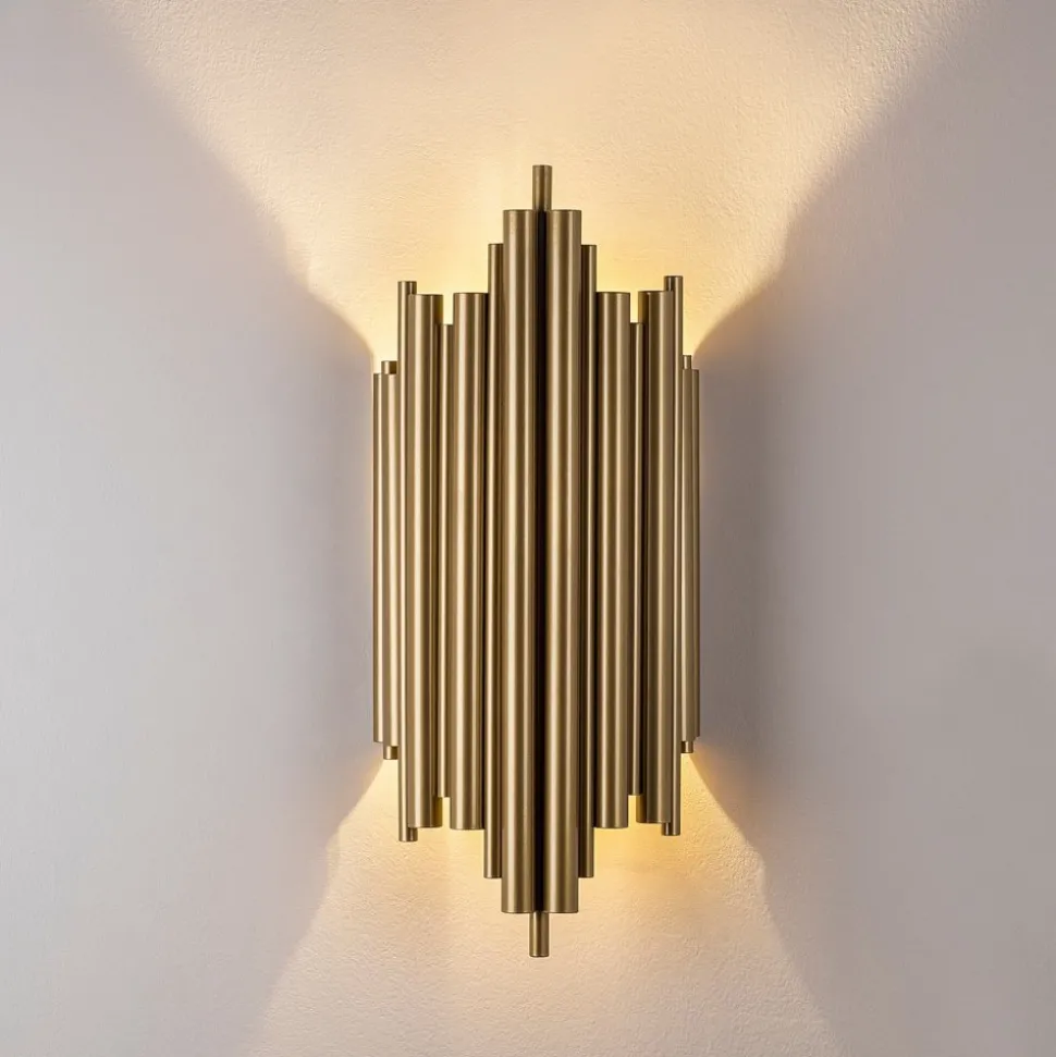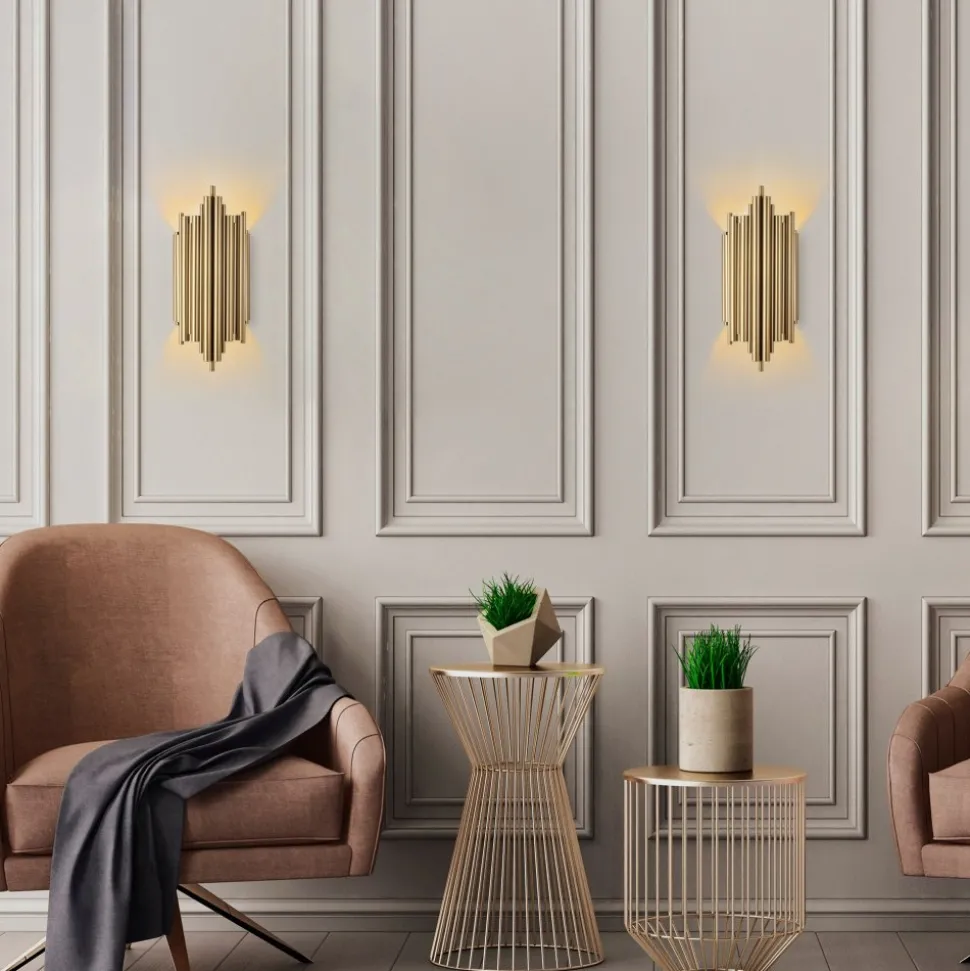 Vägglampa är tillverkad av högkvalitativ metall med guldlackering. Lampan har en E14-sockel och stöder lampor med en maxeffekt på 40 W. Du kan välja en ljuskälla som passar din belysningsstil, oavsett om du föredrar en varmvit eller kallvit ljus. Med IP20-klassificering är denna avsedd för inomhusbruk, vilket gör den idealisk för vardagsrum, hallar eller sovrum där skydd mot fukt inte är nödvändigt.