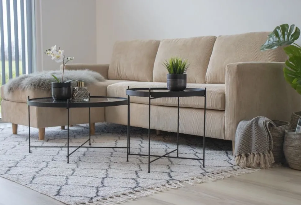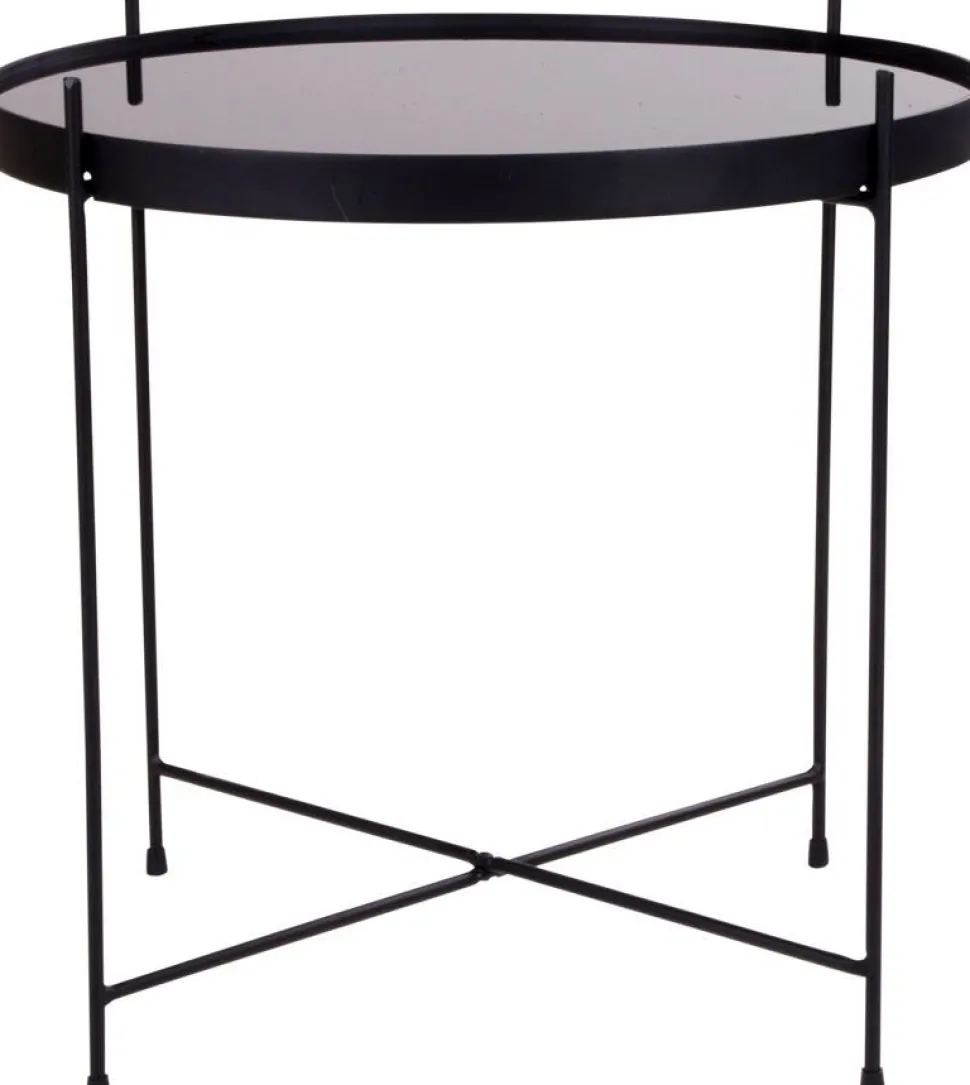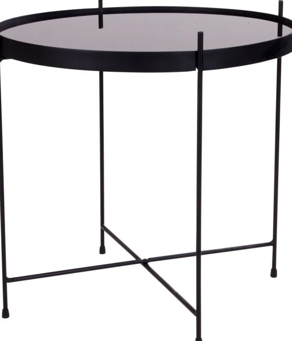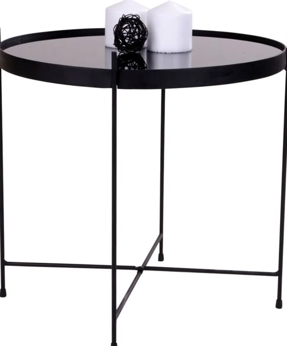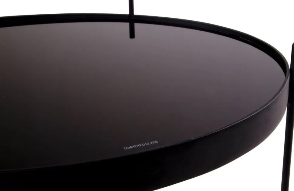 Soffbord i svart stål och glas.