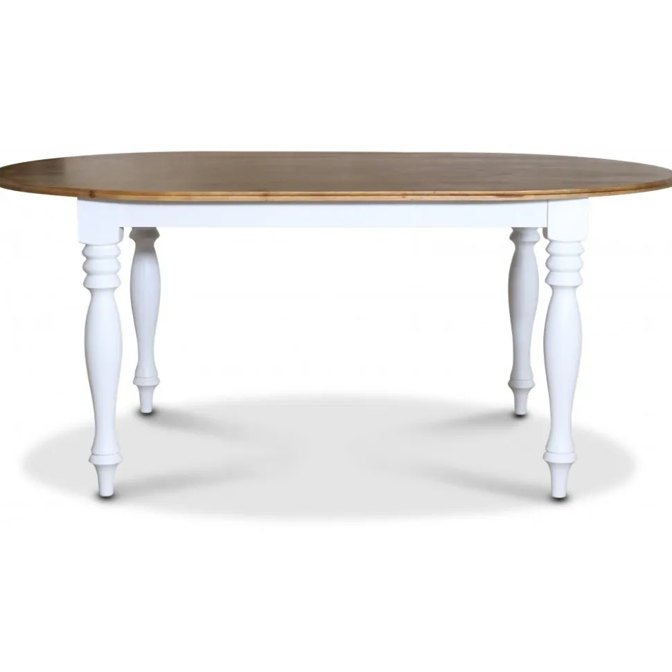 Victoria matbord i klassisk stil. Bordet är robust i massiv furu med vita ben. På varje exemplar sätts en egen prägel då skivan är vaxad för hand vilket framhäver träets naturliga ådring. Varje är unikt.